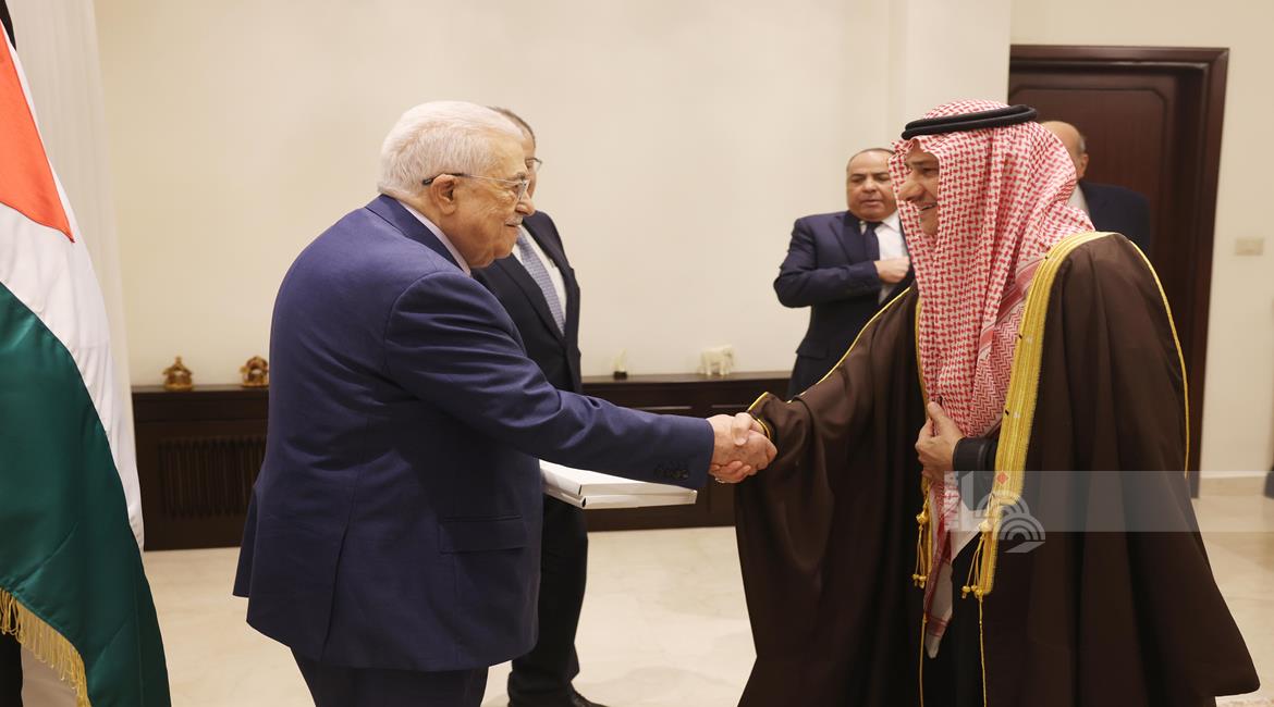 عمان - الرئيس محمود عباس، يتقبل أوراق اعتماد صاحب السمو الأمير منصور بن خالد بن الفرحان آل سعود، سفيرا فوق العادة ومفوضا للمملكة العربية السعودية لدى دولة فلسطين