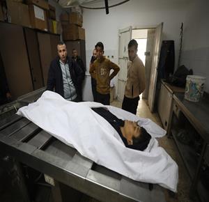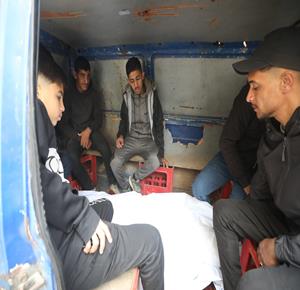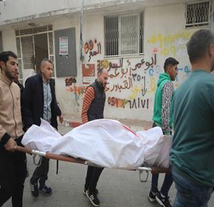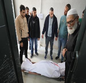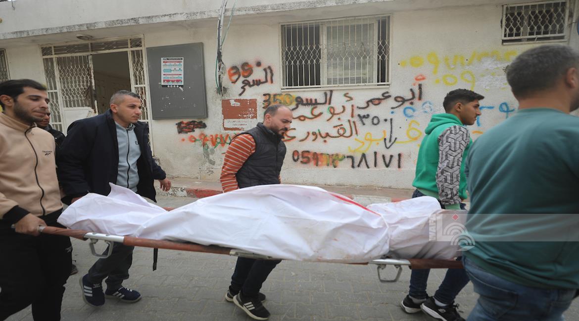وصول جثمان شهيد إلى مستشفى الشفاء بمدينة غزة، بعد ارتقائه برصاص قوات الاحتلال في جباليا البلد شمالي قطاع غزة