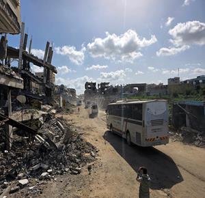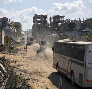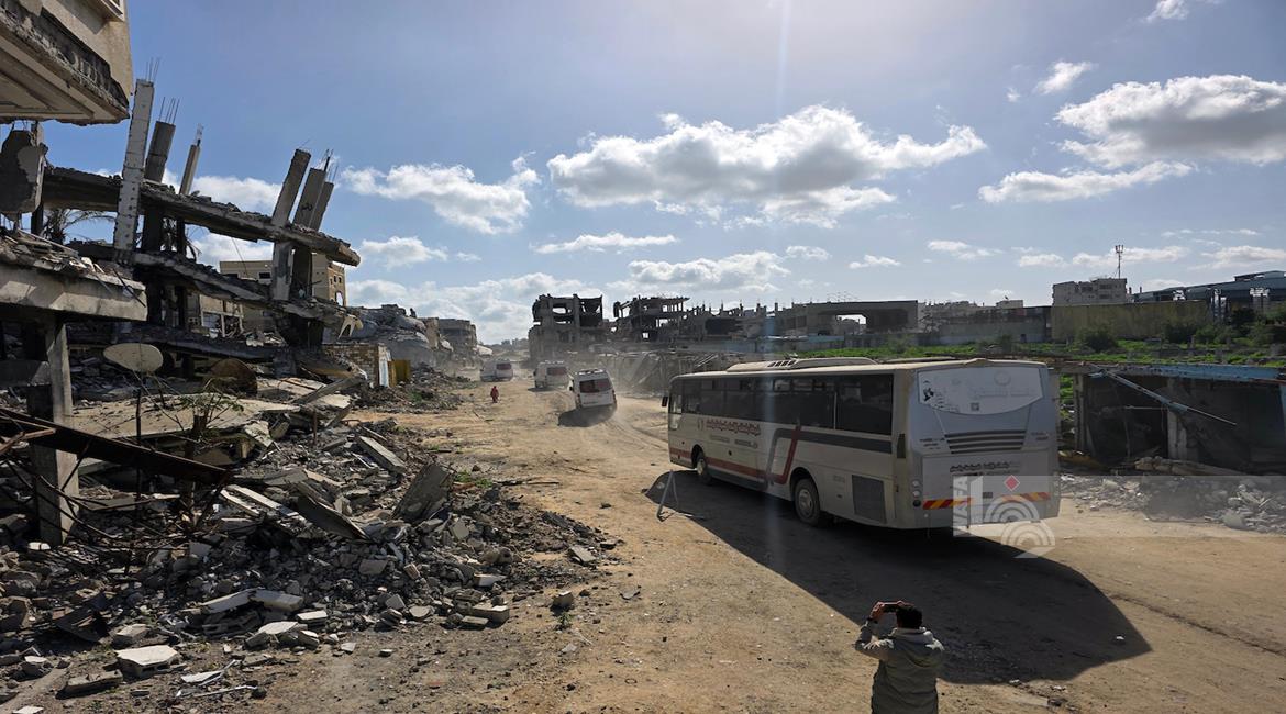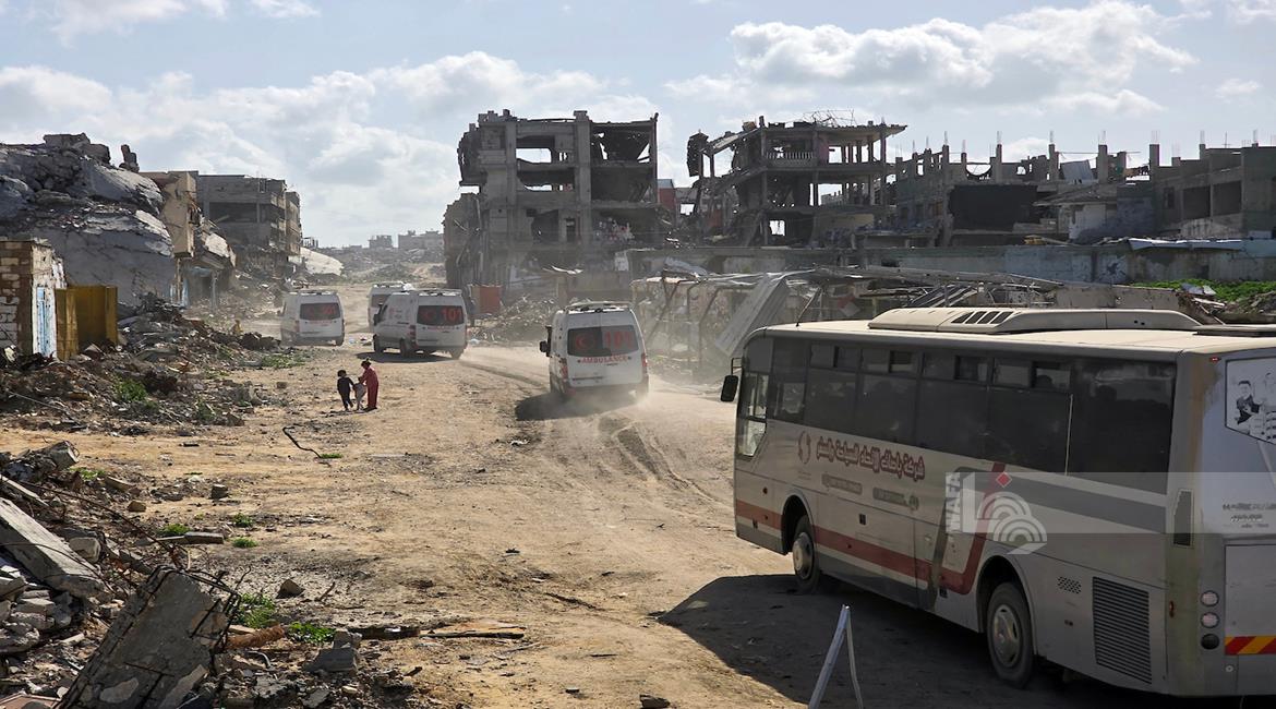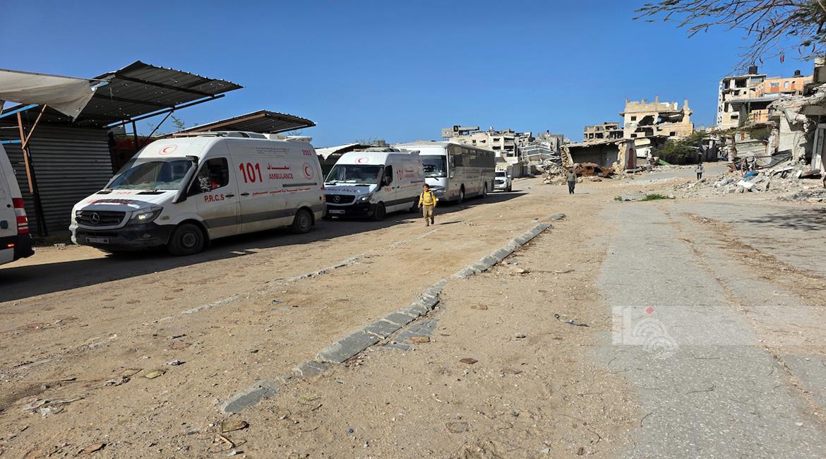 غزة - مرضى وجرحى يغادرون مستشفى الهلال الأحمر في خان يونس ضمن عملية الاجلاء السابعة إلى معبر رفح لنقلهم للعلاج في الخارج