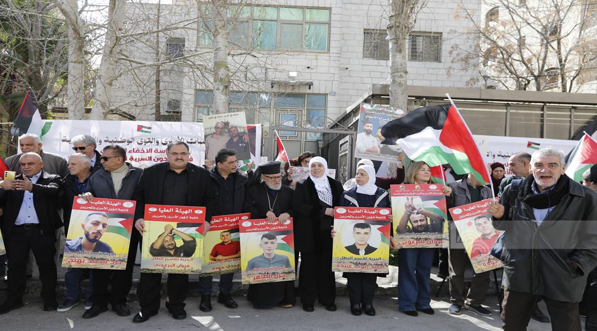 وقفة للمطالبة باستعادة دور الصليب الأحمر ووقف الانتهاكات بحق الاسرى في سجون الاحتلال الاسرائيلي