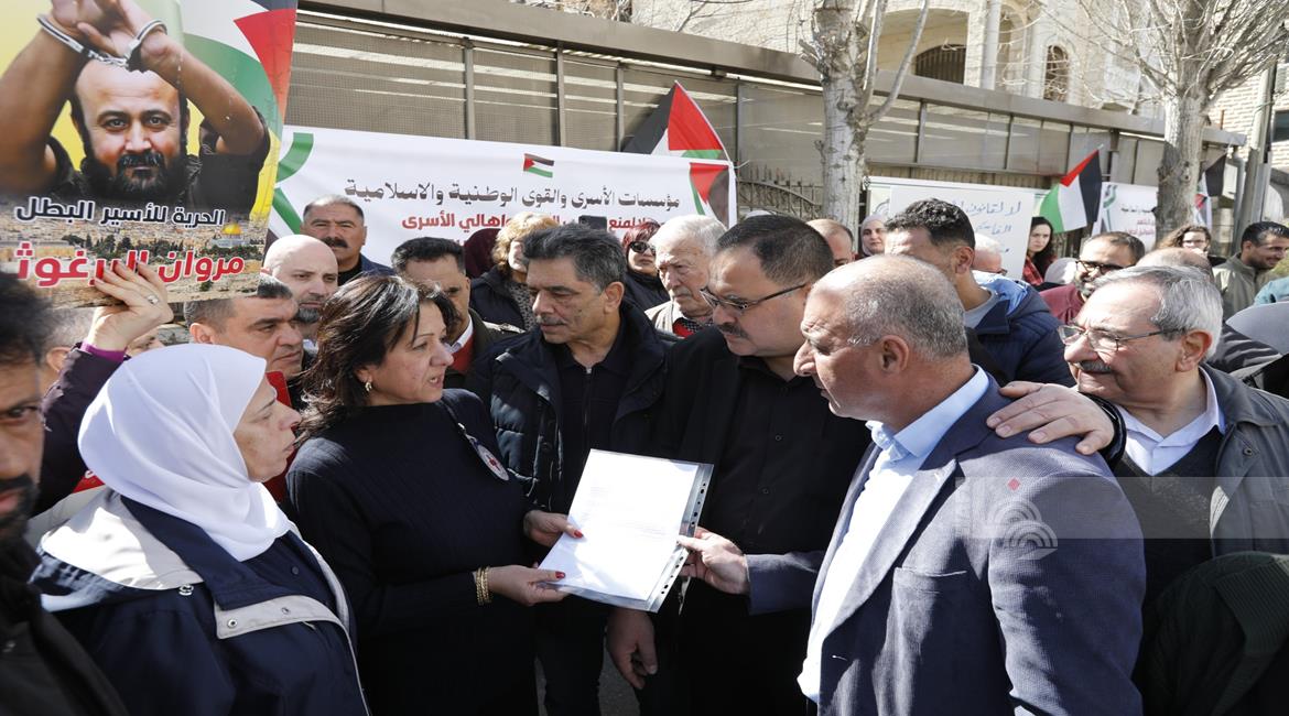 البيرة - مؤسسات الأسرى وقوى وطنية ينظمون وقفة داعمة ومناصرة للأسرى في سجون الاحتلال أمام مقر لجنة الصليب الأحمر في البيرة