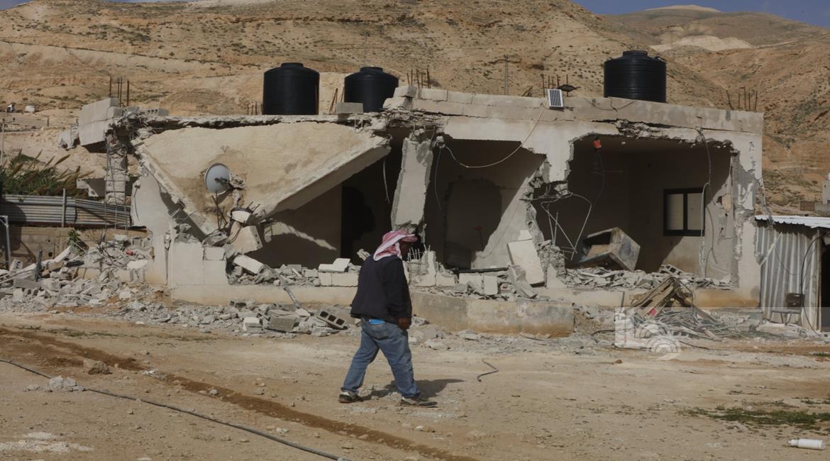 أريحا - مستعمرون بحماية جنود الاحتلال الإسرائيلي يهدمون 15منزلاً في منطقة سطيح بالديوك التحتا غرب أريحا