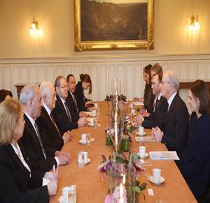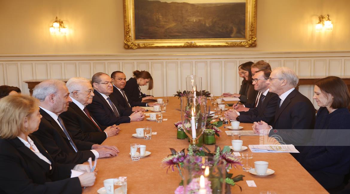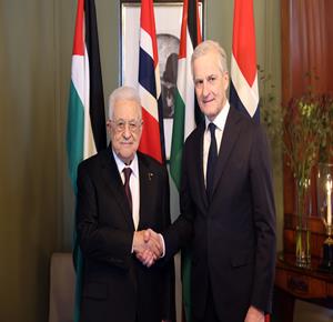 أوسلو - الرئيس محمود عباس، خلال لقائه رئيس وزراء النرويج يوناس غار ستور، في العاصمة النرويجية أوسلو