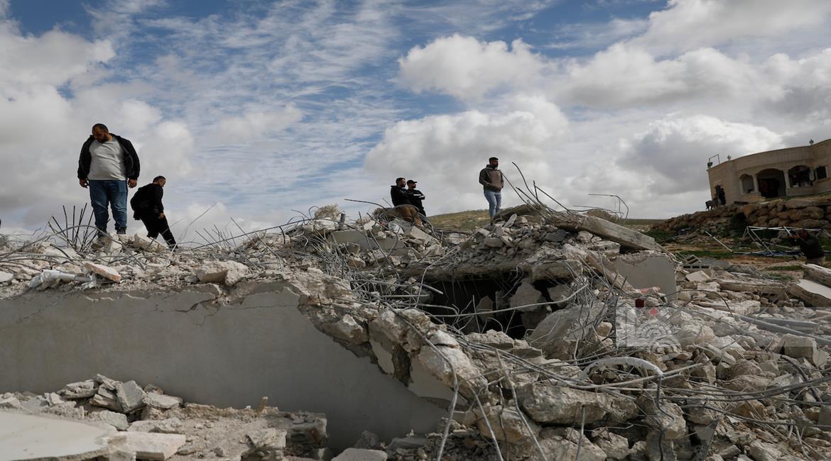 مستعمرون بحماية جنود الاحتلال الإسرائيلي يهدمون 15منزلاً في منطقة سطيح بالديوك التحتا غرب أريحا