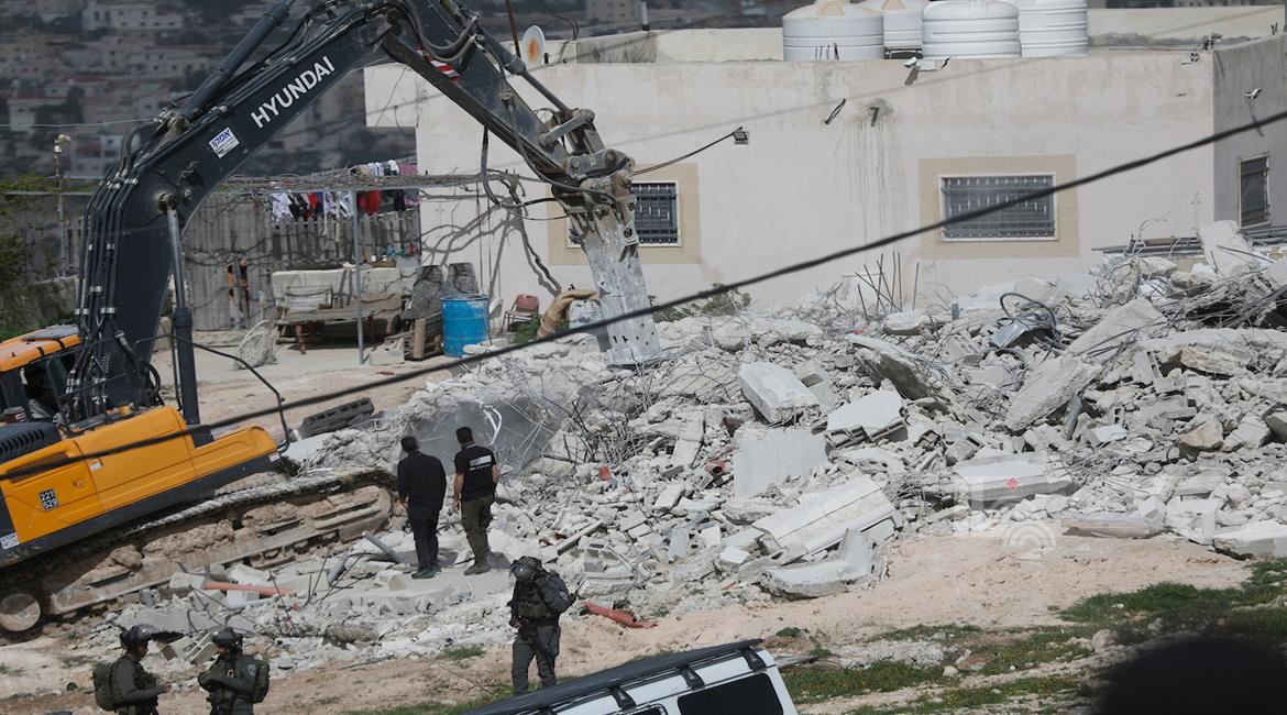 الخليل - قوات الاحتلال الإسرائيلي تهدم منزلاً في بلدة بيت عوا غرب الخليل