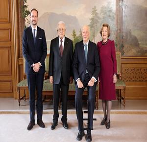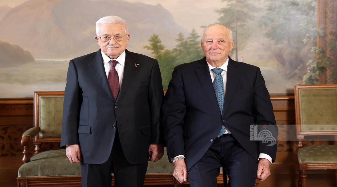 أوسلو - الرئيس محمود عباس، خلال لقائه ملك النرويج هارالد الخامس، في القصر الملكي بالعاصمة النرويجية أوسلو