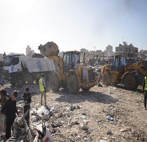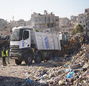 غزة - برنامج الأمم المتحدة الإنمائي، بالتعاون مع وكالات أخرى تابعة للأمم المتحدة، يطلق عمليات تنظيف في أحد أكبر مواقع النفايات في منطقة سوق فراس بمدينة غزة، والذي يُشكّل خطراً جسيماً على الصحة العامة