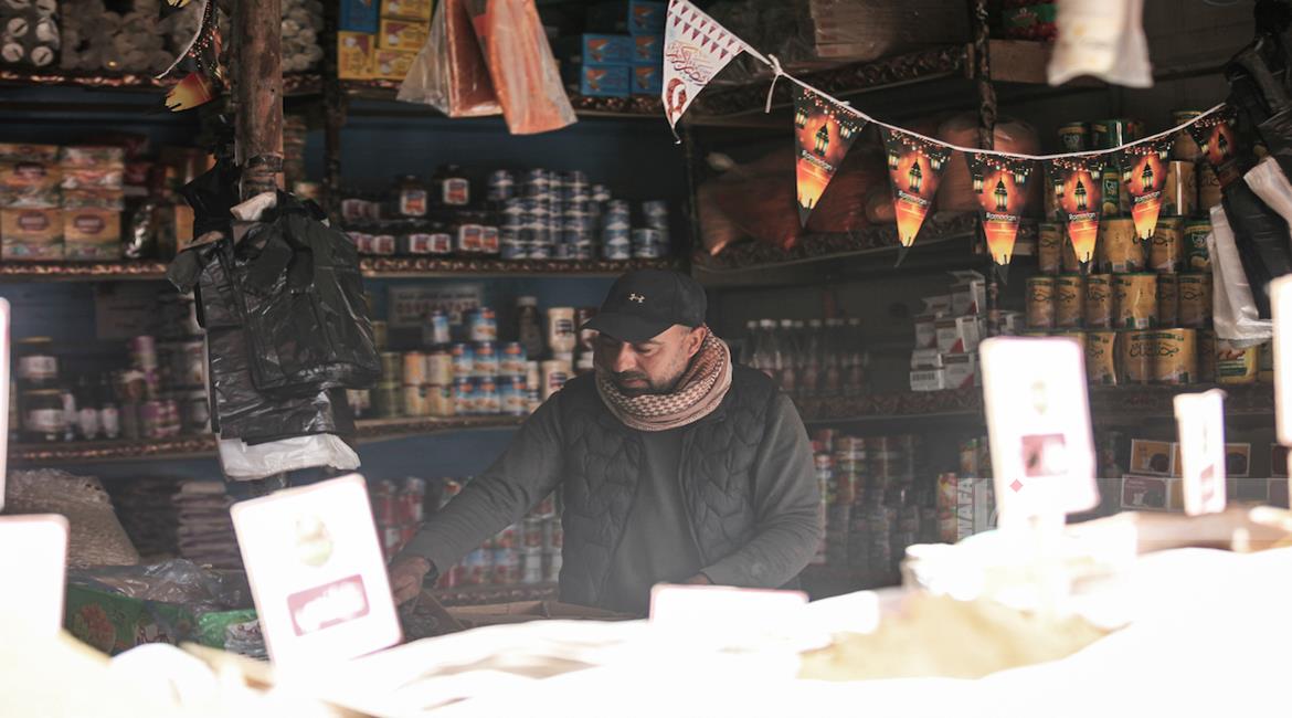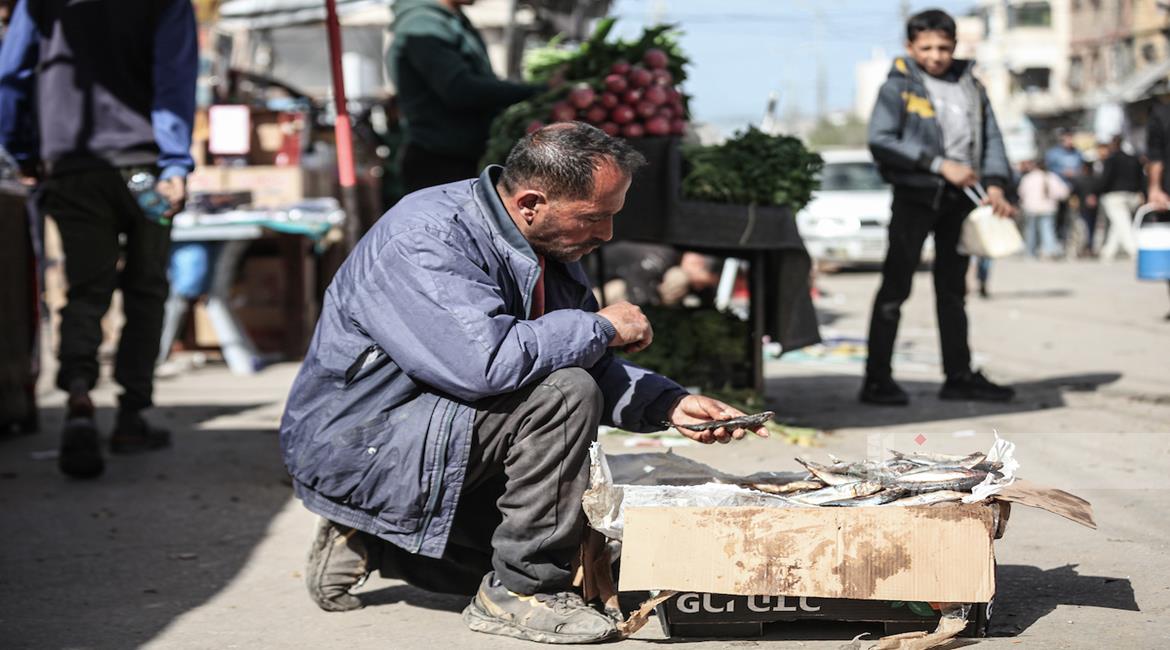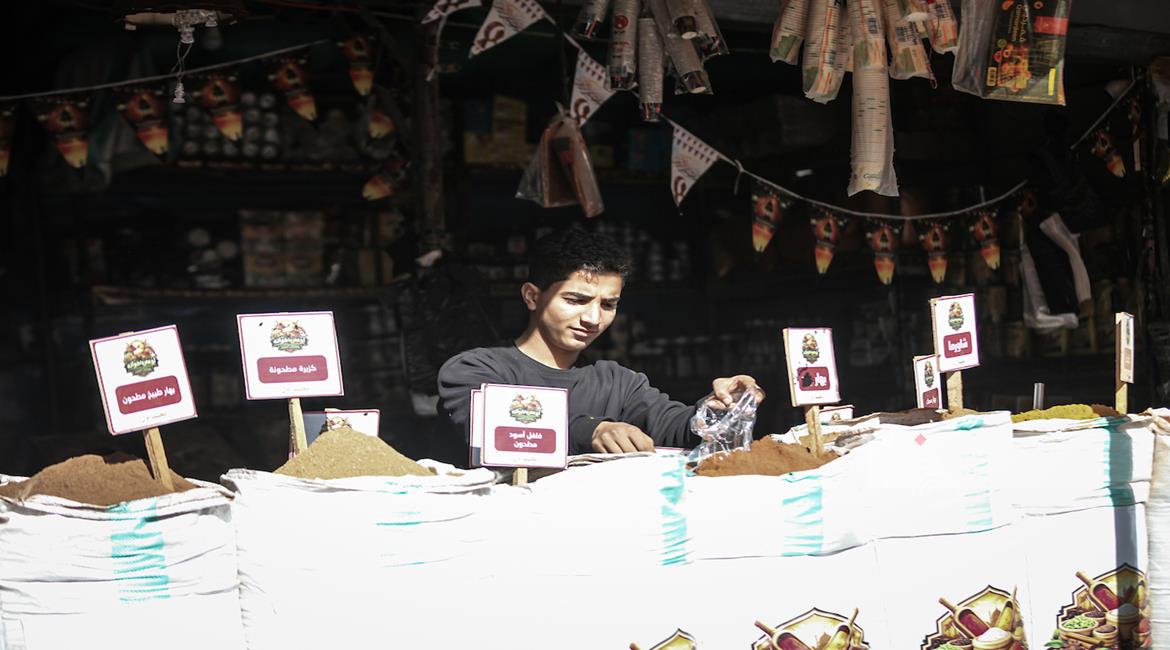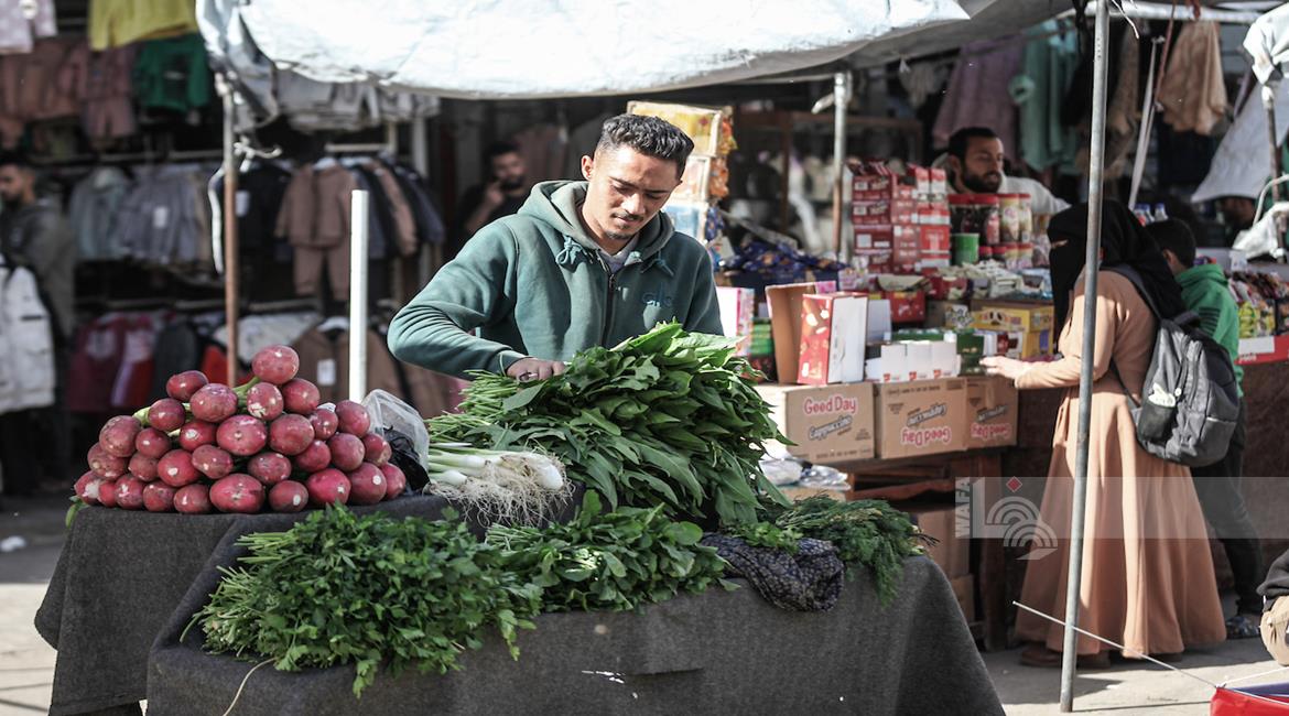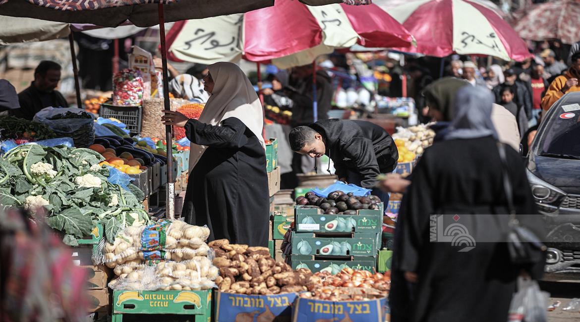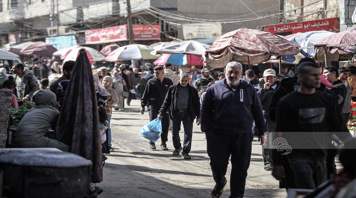 غزة - مواطنون يتوافدون الى السوق الشعبي في مدينة دير البلح، وسط قطاع غزة للتسوق قبيل حلول شهر رمضان المبارك