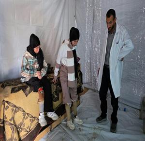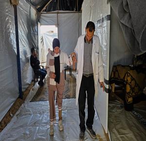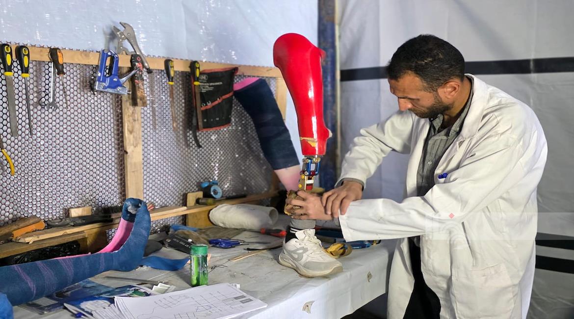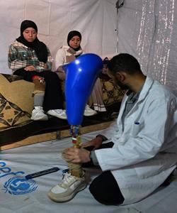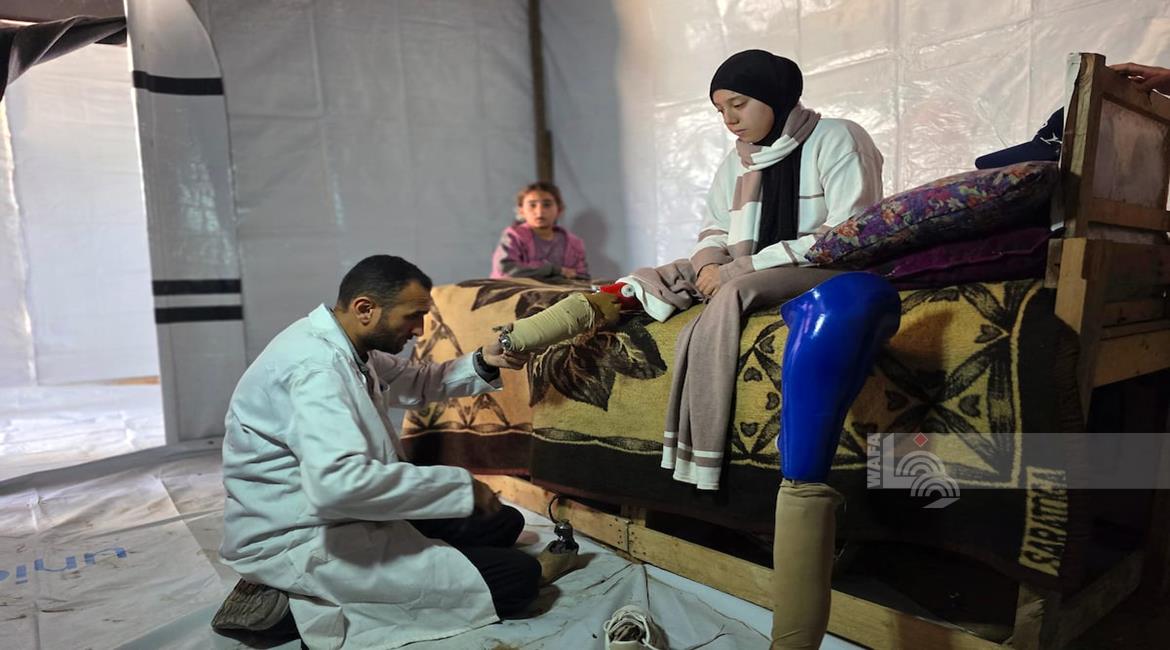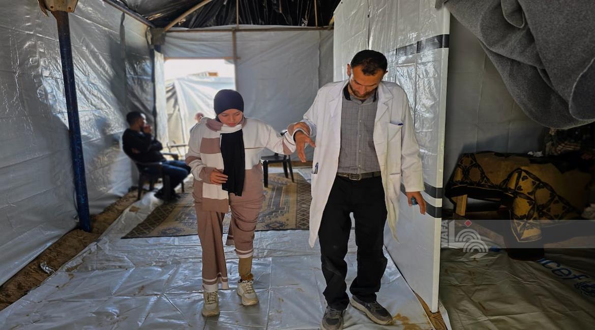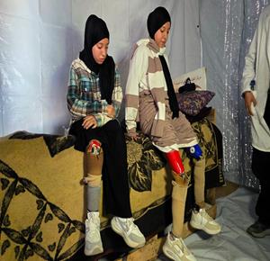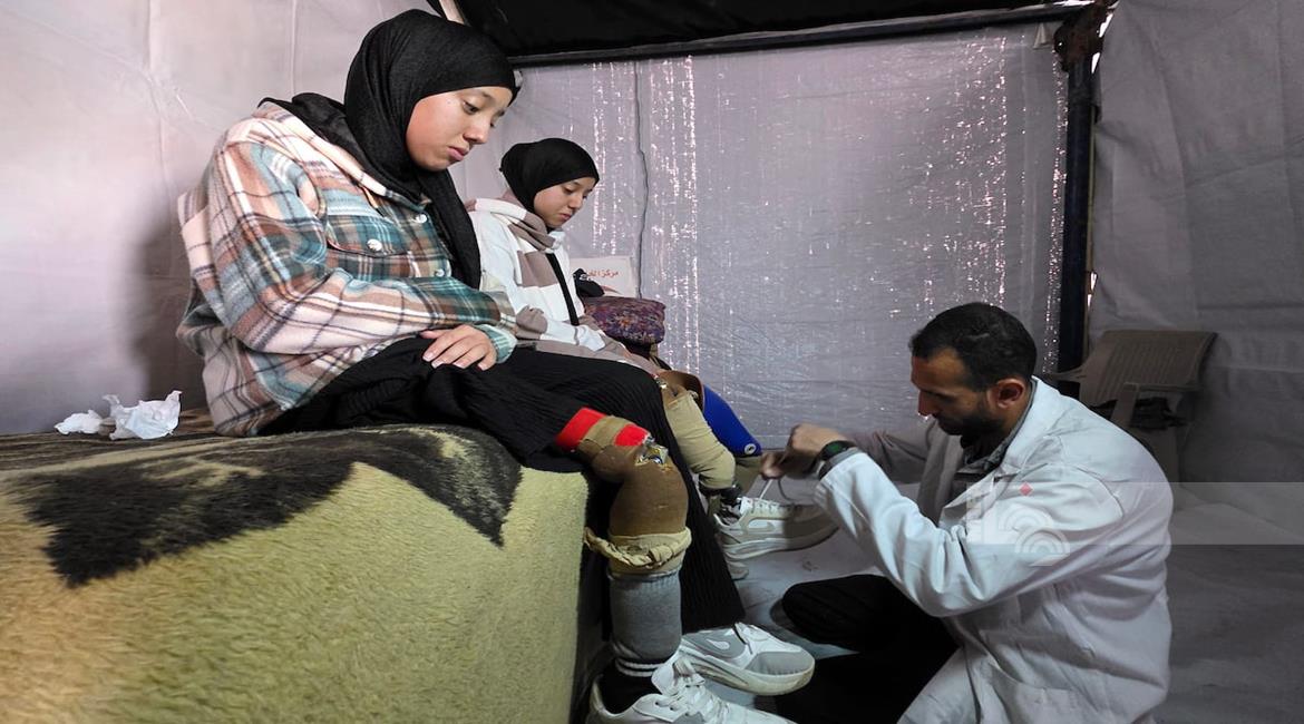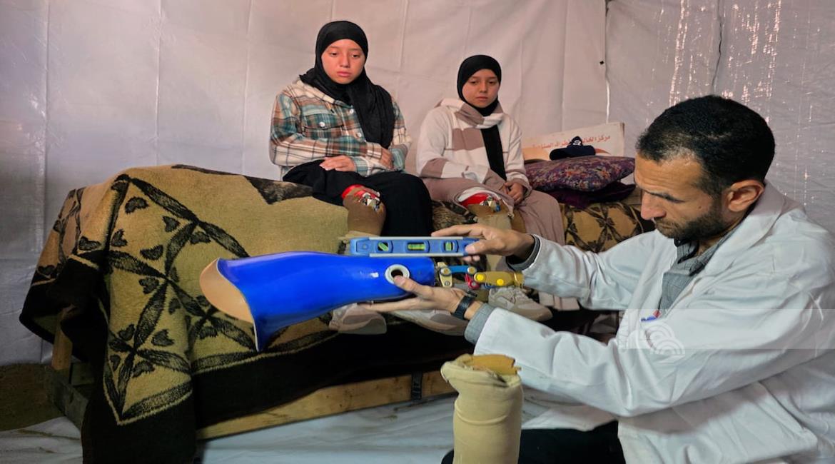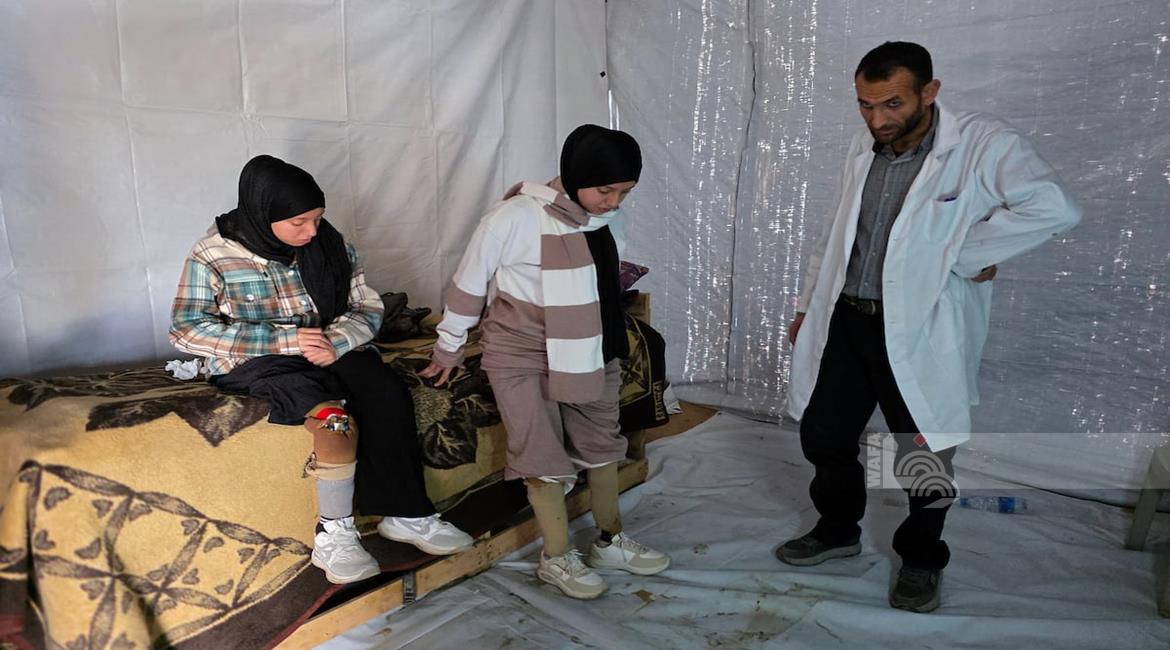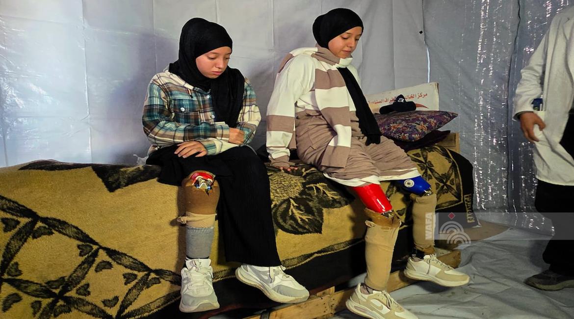 غزة - الفتاتان لميس وريماس شلوف تلجآن إلى مركز تأهيل بدائي في مواصي خان يونس جنوب قطاع غزة، في محاولة لاستعادة الحركة بأطراف صناعية متآكلة