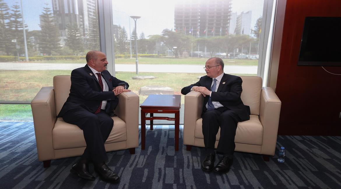 أديس أبابا - رئيس الوزراء محمد مصطفى،خلال لقائه وزير خارجية مصر بدر عبد العاطي، ووزير خارجية تونس محمد علي النفطي على هامش أعمال قمة الاتحاد الأفريقي التاسعة والثلاثين