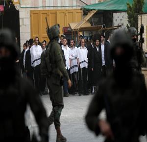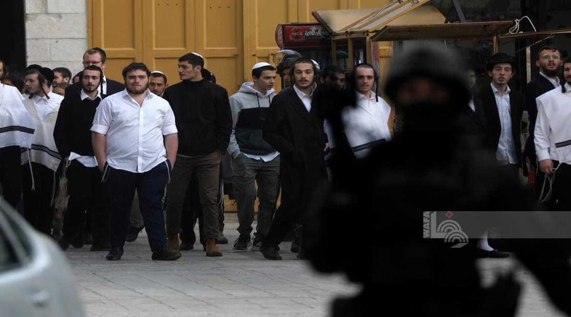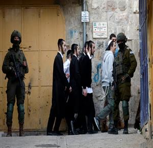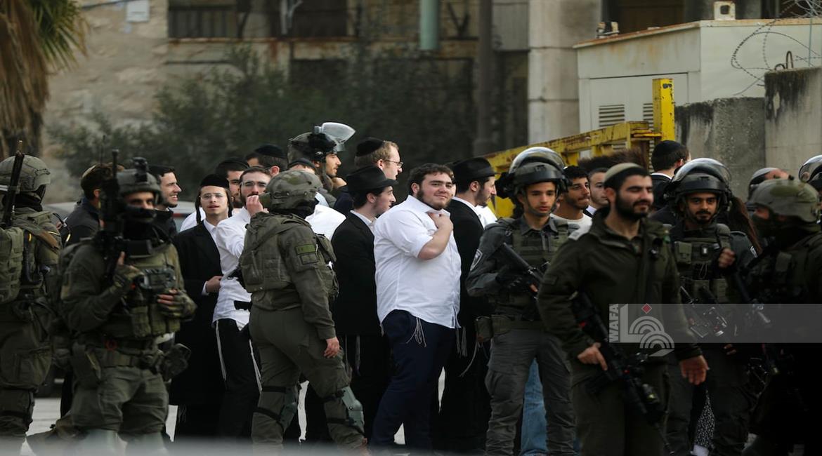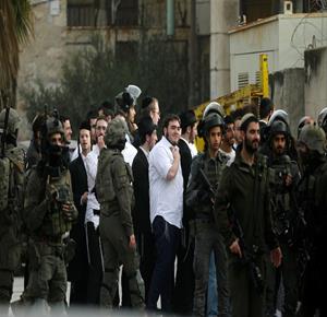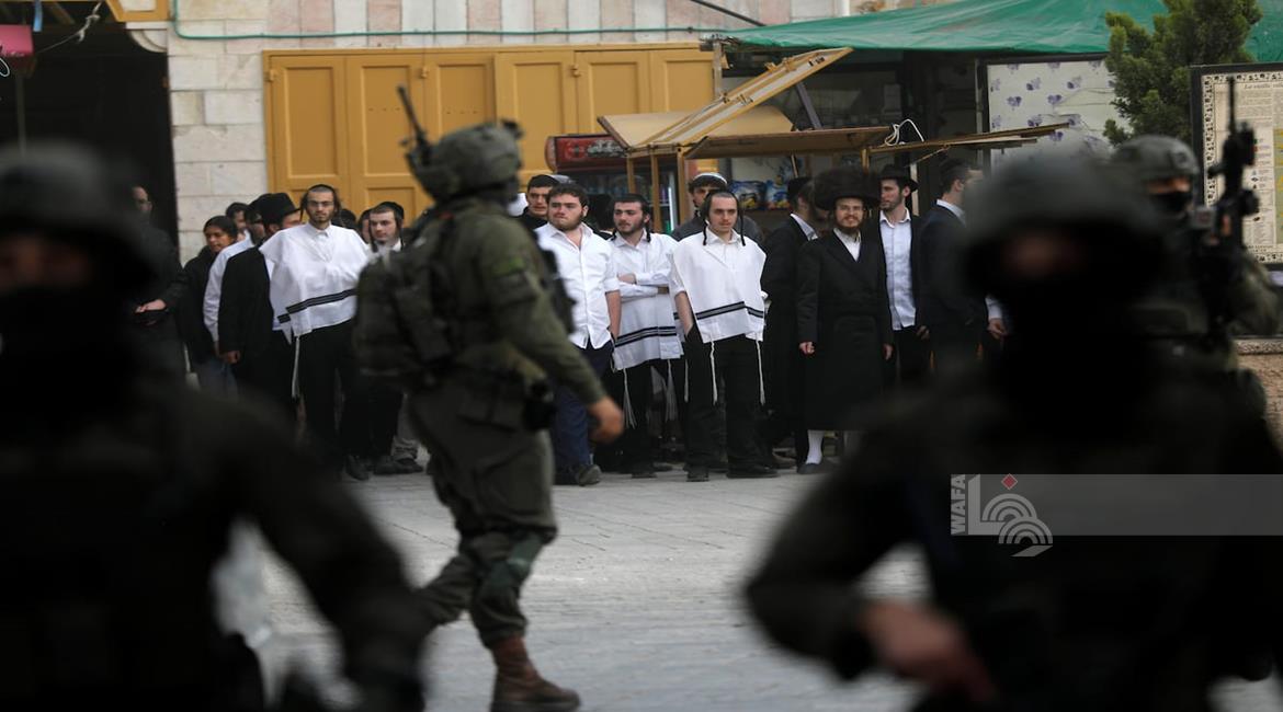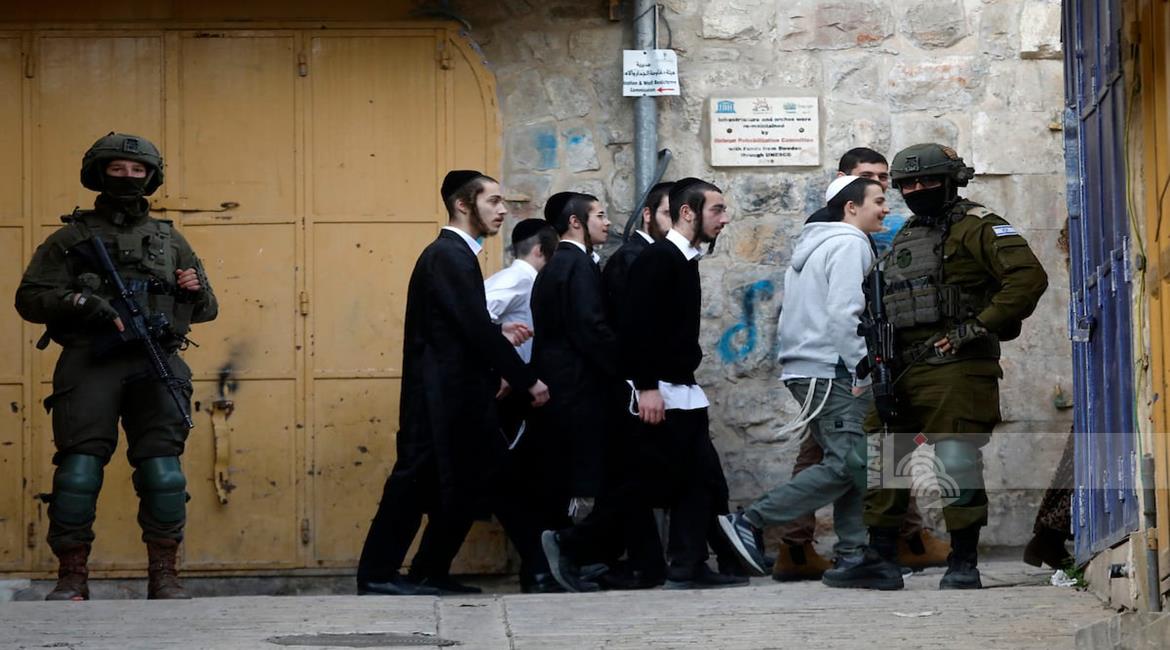 الخليل - مستعمرون بحماية جيش الاحتلال يقتحمون البلدة القديمة في الخليل