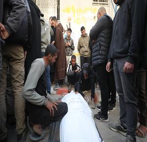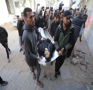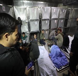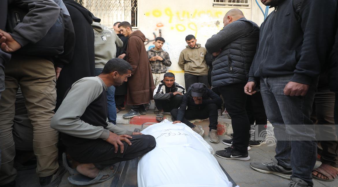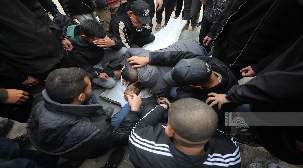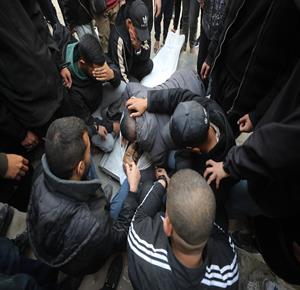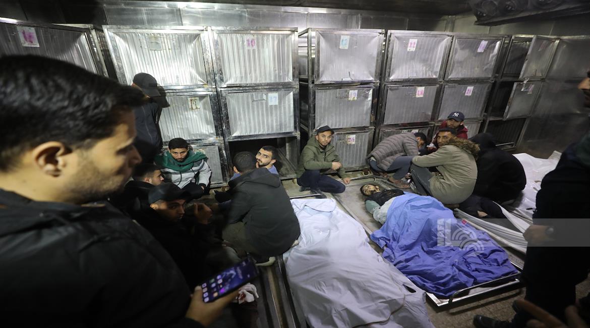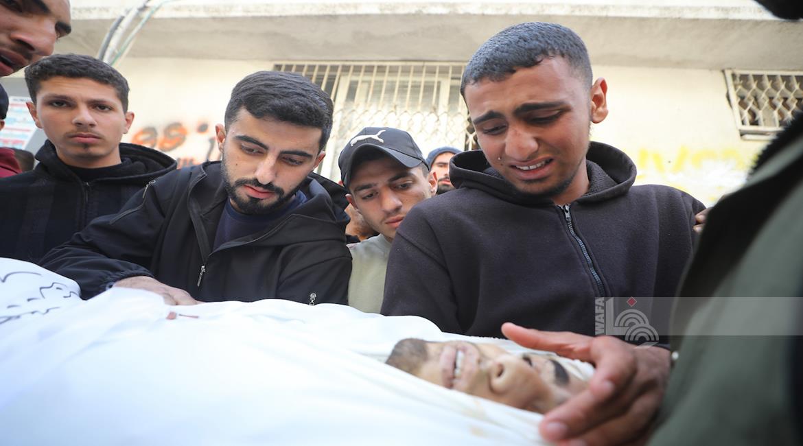 غزة - وداع أربعة شهداء في مستشفى الشفاء ارتقوا جراء غارة اسرائيلية على جباليا شمال قطاع غزة
