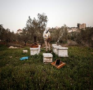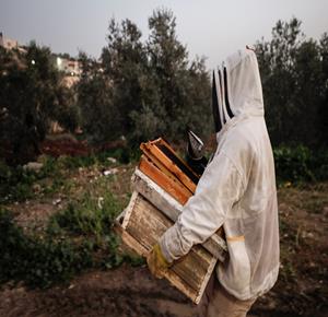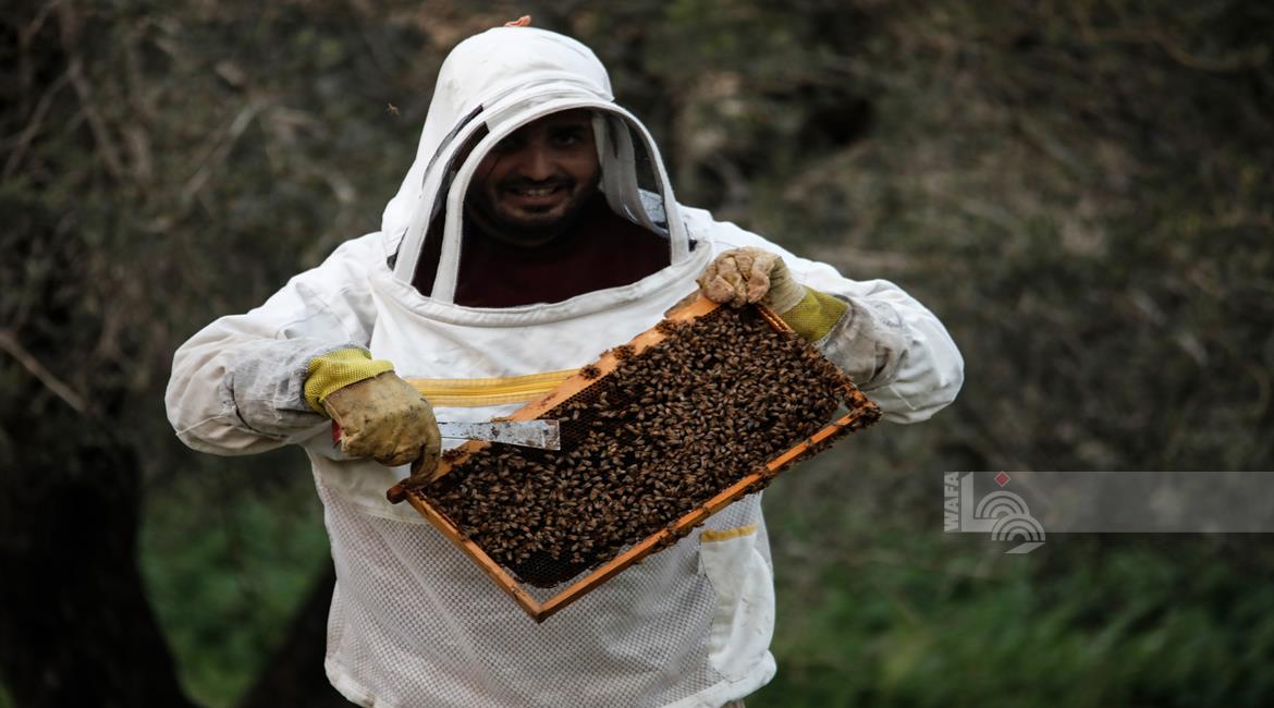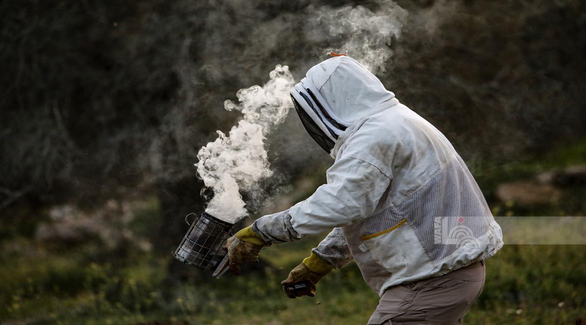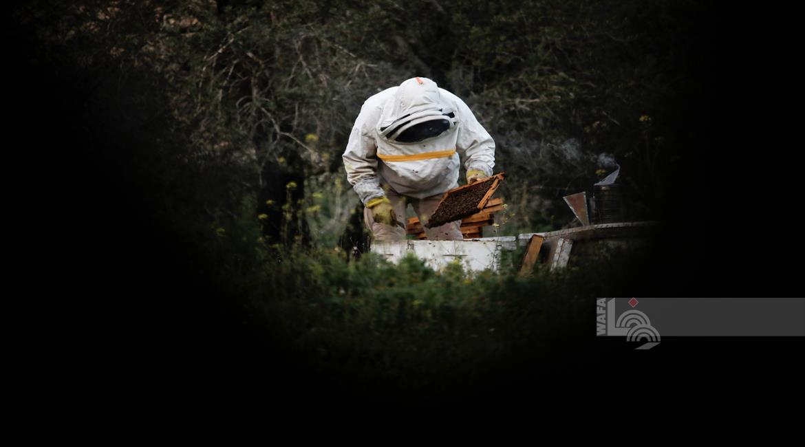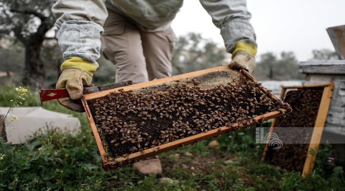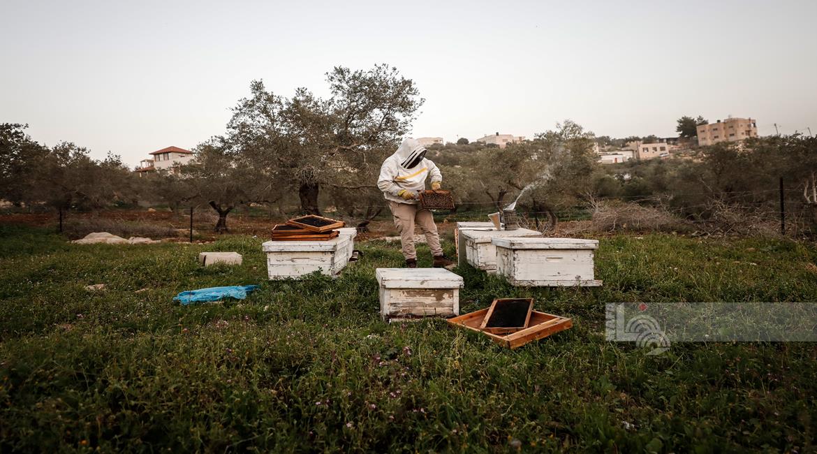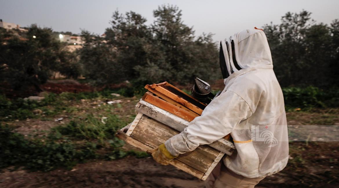 جنين - النَحال محمد عتيق من بلدة برقين غرب جنين، يقوم بتحضير براويز تكاثر النحل مع اقتراب فصل الربيع