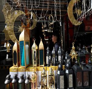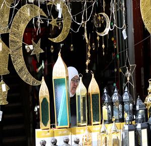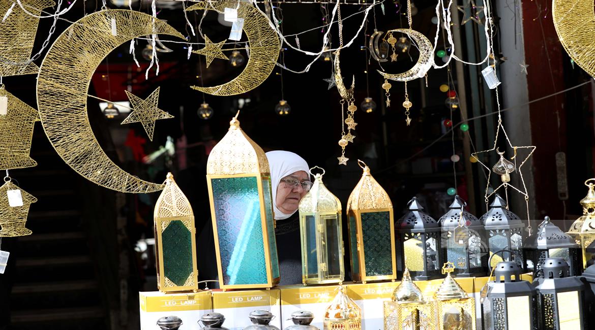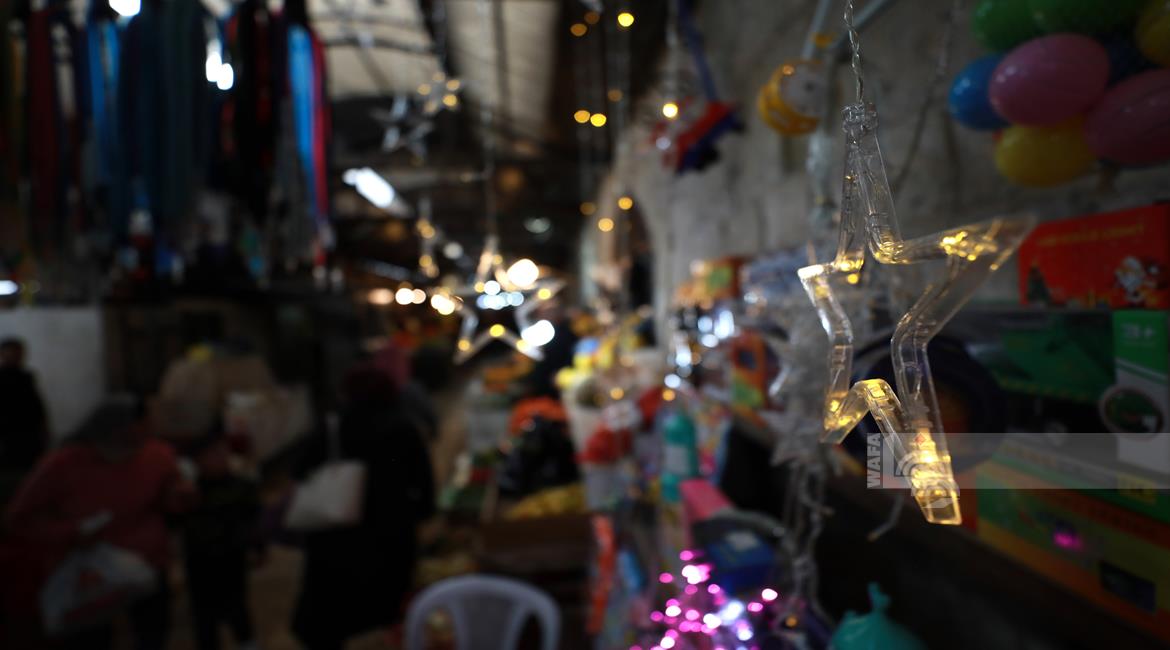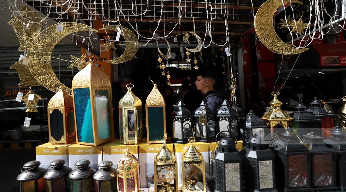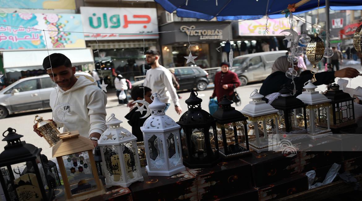 نابلس - مواطنون يتسوقون لشراء زينة رمضان في أسواق مدينة نابلس