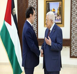 الرئيس، محمود عباس يتقبل أوراق اعتماد رئيس مكتب تمثيل جمهورية مالطا لدى دولة فلسطين ديفيد موسكات.