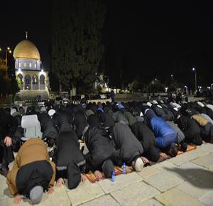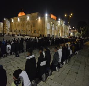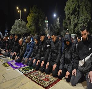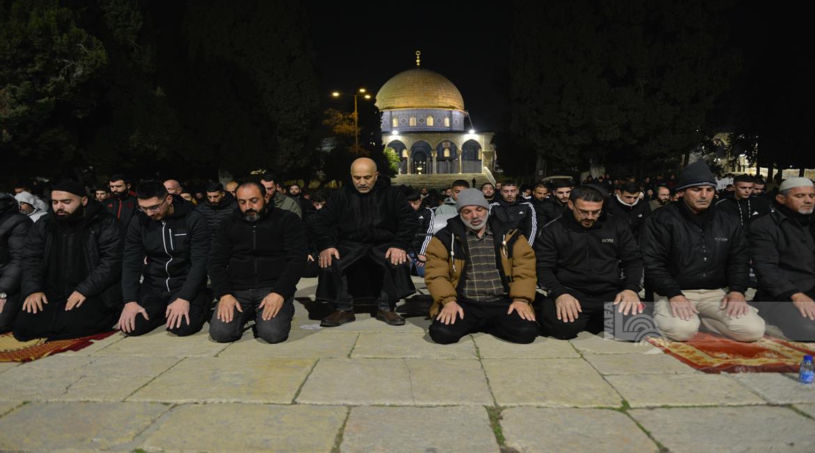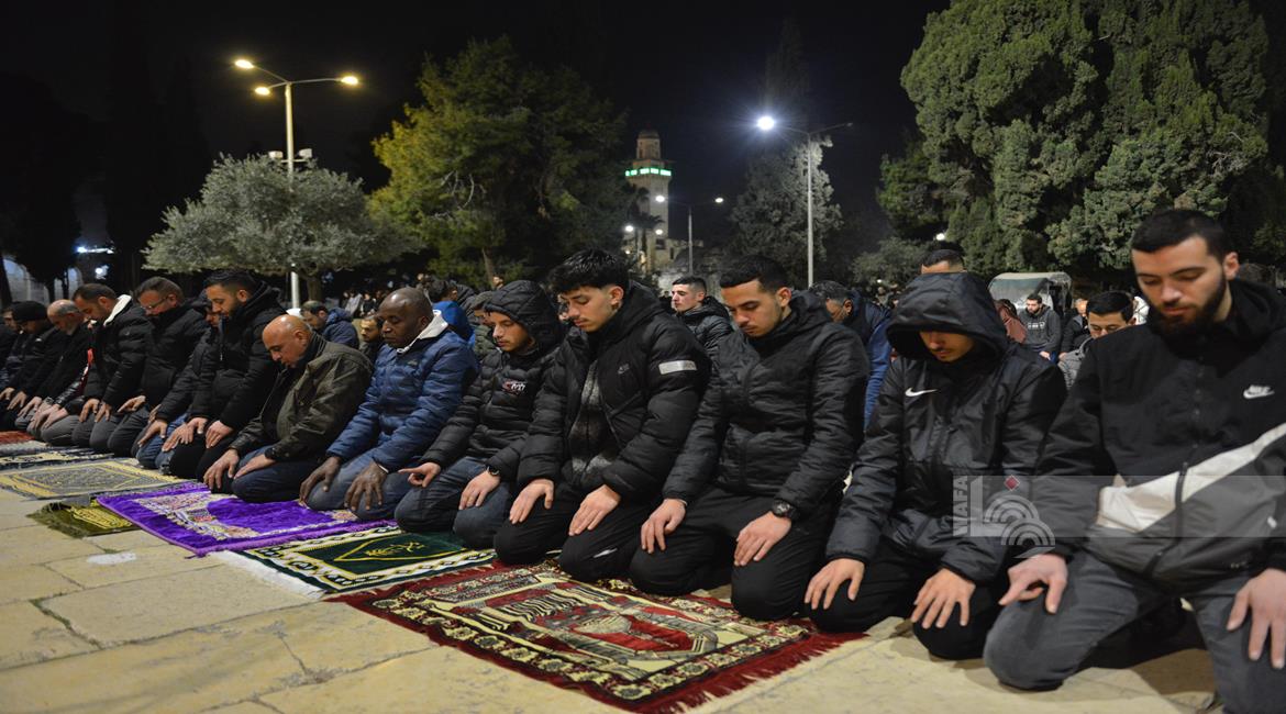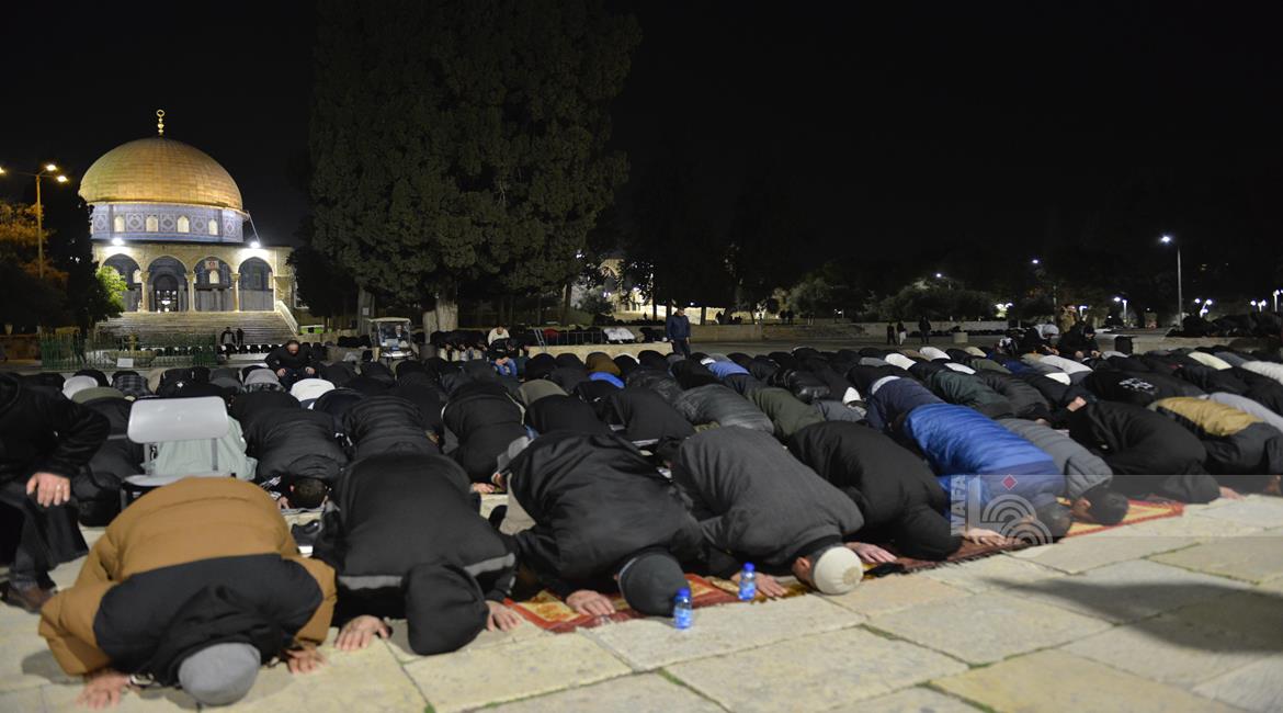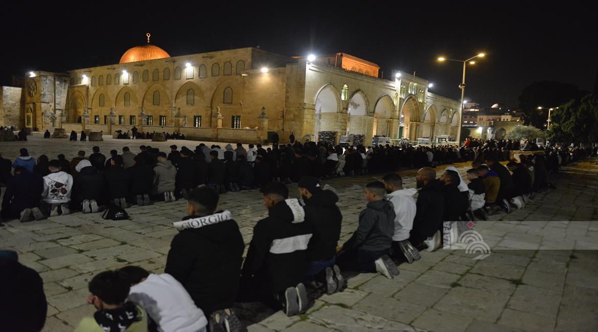 القدس - مواطنون يؤدون صلاتي العشاء والتراويح في المسجد الاقصى المبارك