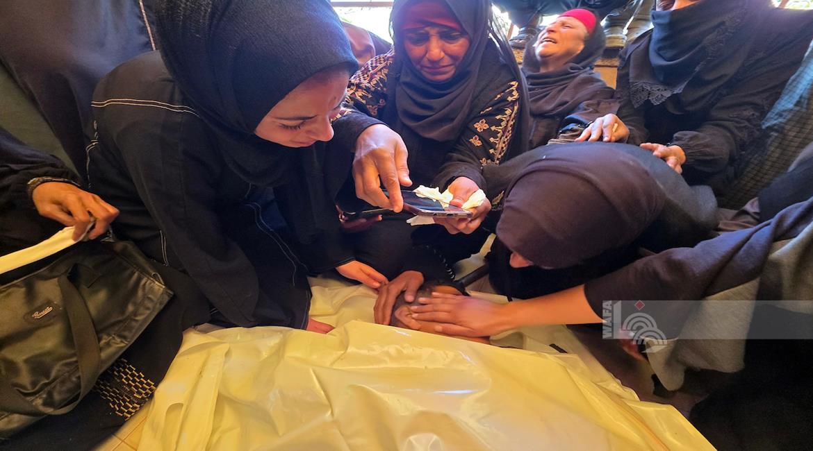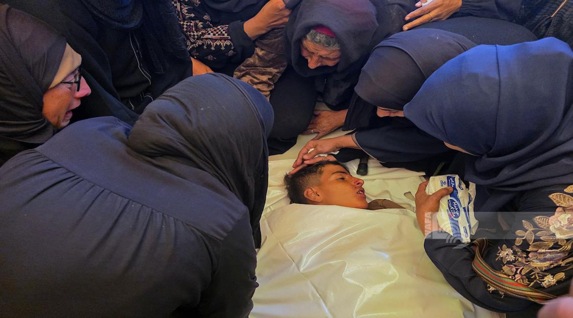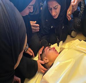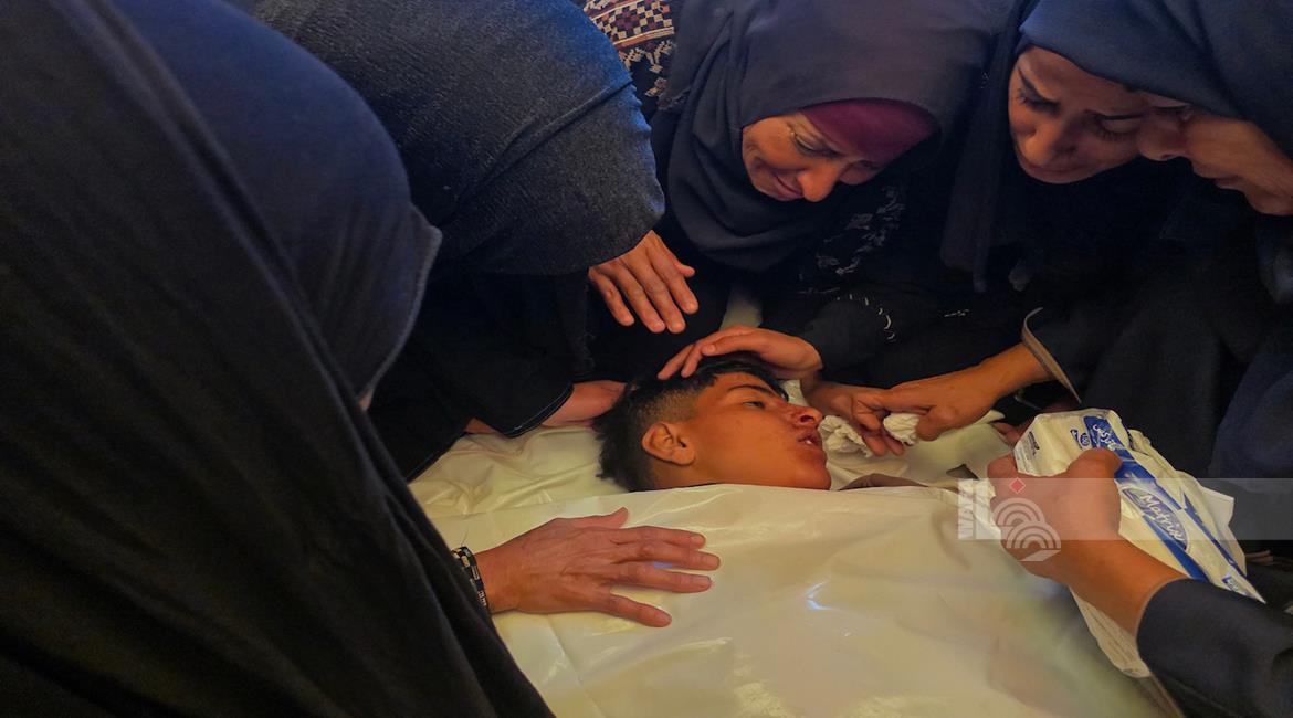 غزة - وداع وتشييع الطفل مهند النجار (14 عاماً) الذي ارتقى بنيران الاحتلال الإسرائيلي شرق خان يونس جنوب قطاع غزة