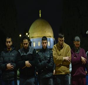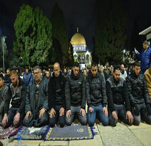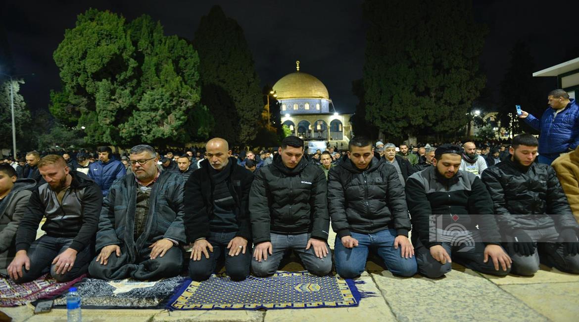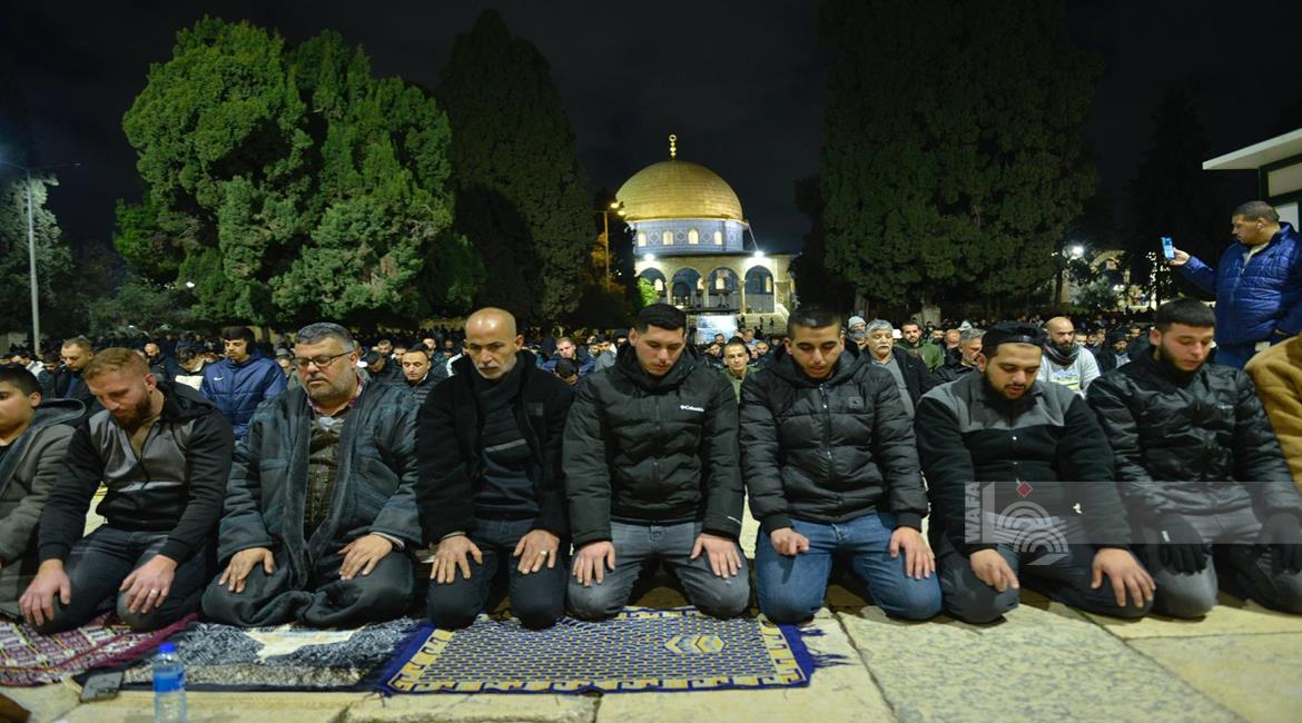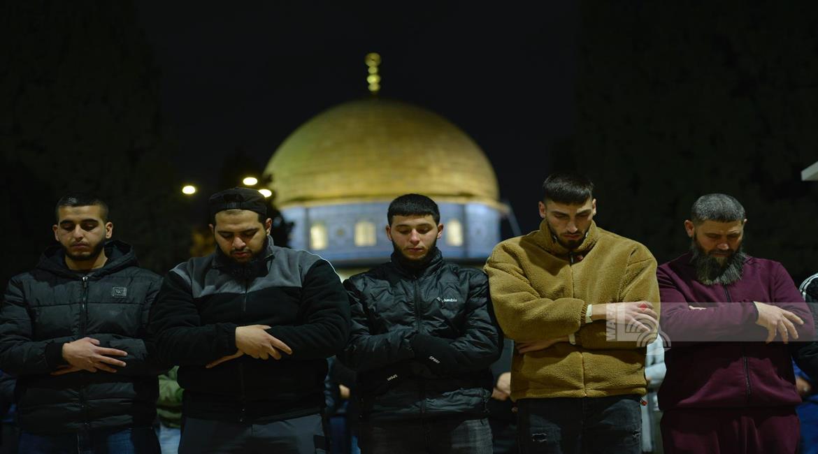 مواطنون يؤدون صلاتي العشاء والتراويح في المسجد الاقصى المبارك