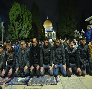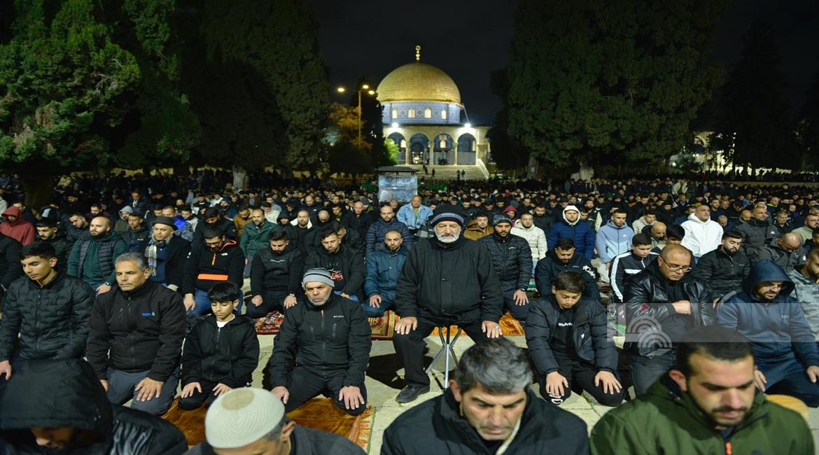 القدس - 60 الف مصل يؤدون صلاتي العشاء والتراويح في رحاب المسجد الأقصى المبارك