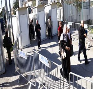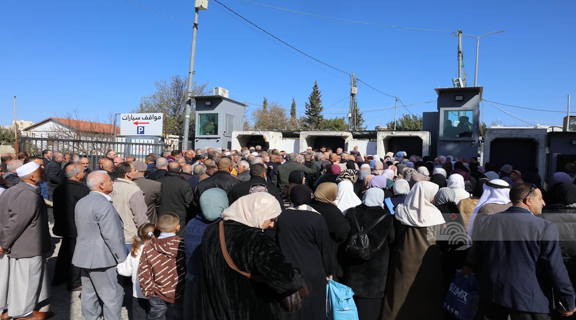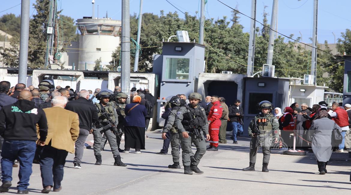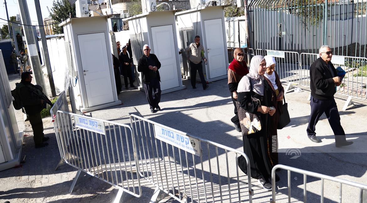 بيت لحم - مواطنون يتوافدون عبر حاجز بيت لحم الشمالي باتجاه المسجد الأقصى لأداء صلاة الجمعة الأولى من شهر رمضان المبارك