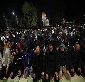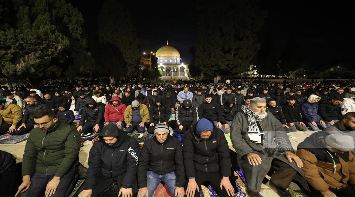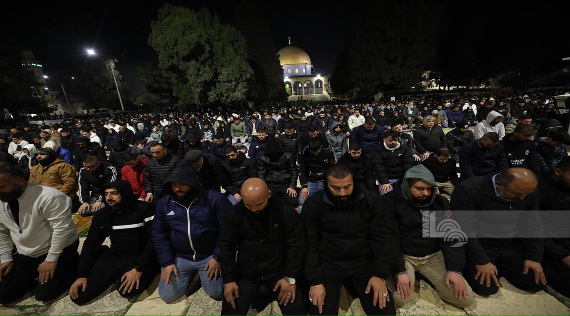 القدس - 60 ألف مصلٍ يؤدون صلاتي العشاء والتراويح في المسجد الأقصى