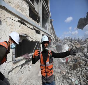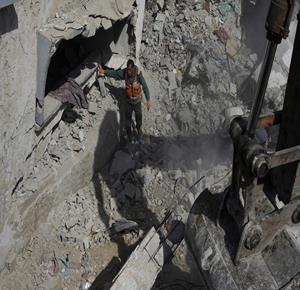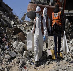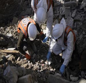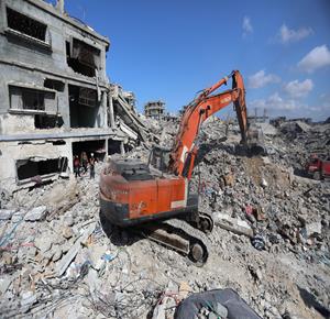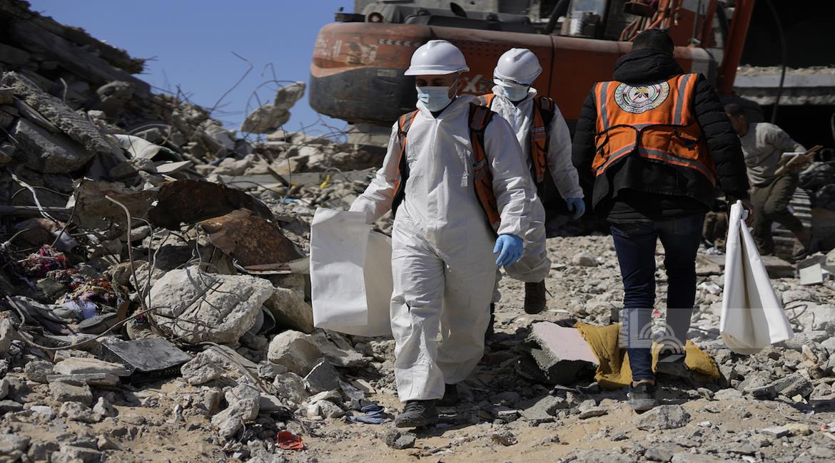 غزة - انتشال رفات جثامين شهداء من تحت أنقاض منزل دمره الاحتلال خلال الحرب في بيت لاهيا شمال قطاع غزة
