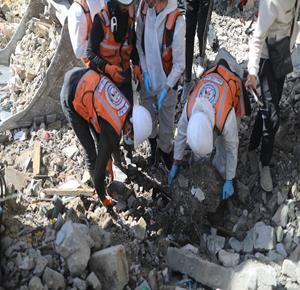 انتشال رفات 67 شهيدا من عائلة أبو نصر من تحت أنقاض منزل استهدف بالقصف في بيت لاهيا شمال غزة