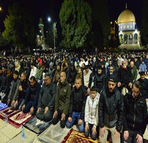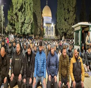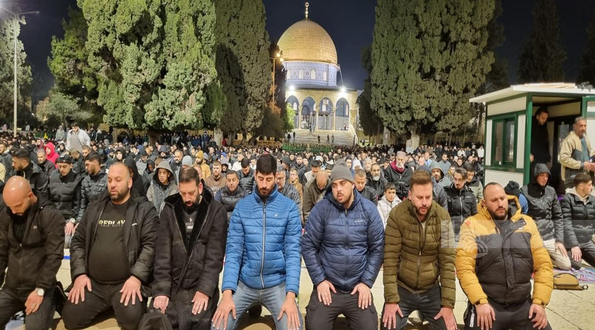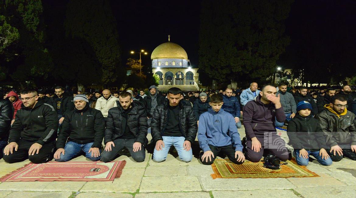 القدس - 50 ألف مصلٍ يؤدون صلاتي العشاء والتراويح في المسجد الأقصى