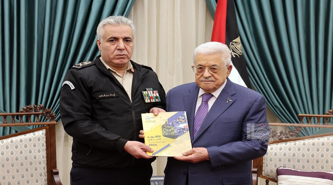 الرئيس محمود عباس، يتسلم التقرير السنوي لجهاز الدفاع المدني الفلسطيني لعام 2025، وذلك خلال استقباله المدير العام للجهاز اللواء أكرم ثوابتة، وقيادة الجهاز، في مقر الرئاسة بمدينة رام الله