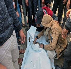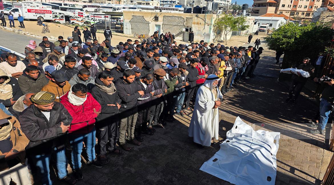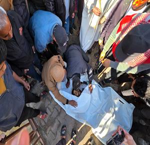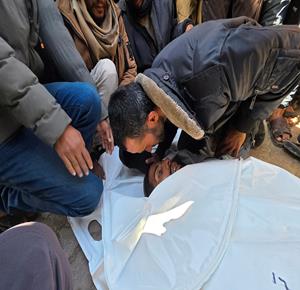 تشييع جثمانَي شهيدَين في مستشفى الشفاء بمدينة غزة