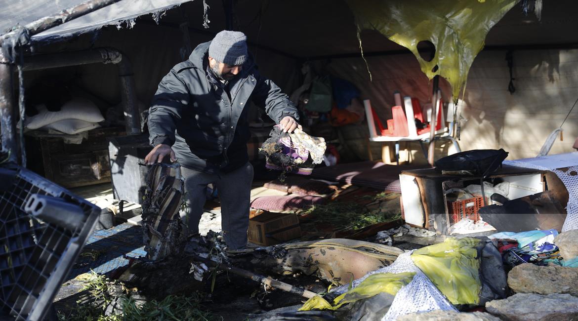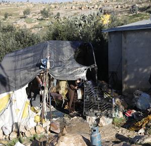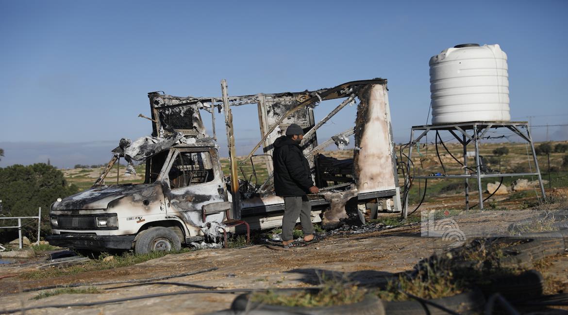 الخليل - مواطنون يتفقدون الأضرار التي لحقت بمنازلهم وممتلكاتهم في تجمع سوسيا جنوب الخليل ،عقب اعتداءات المستعمرين