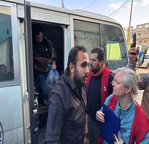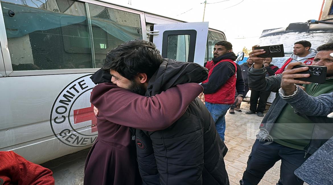 غزة - وصول ثمانية أسرى إلى مستشفى شهداء الأقصى في دير البلح وسط قطاع غزة عقب الإفراج عنهم من قبل الاحتلال