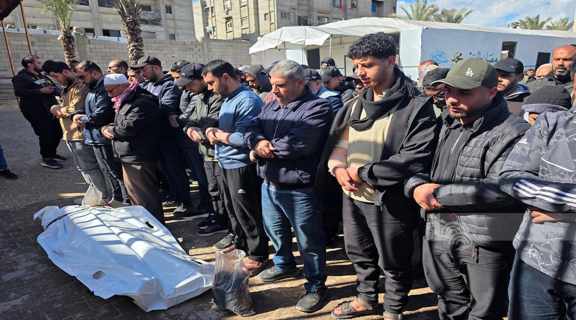 مواطنون يوّدعون جثمان الشهيد حسن عبد الرحمن اللحام (45 عامًا) في مستشفى ناصر الطبي، بعد استشهاده برصاص الجيش الإسرائيلي في خان يونس جنوب قطاع غزة