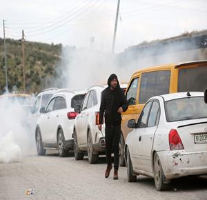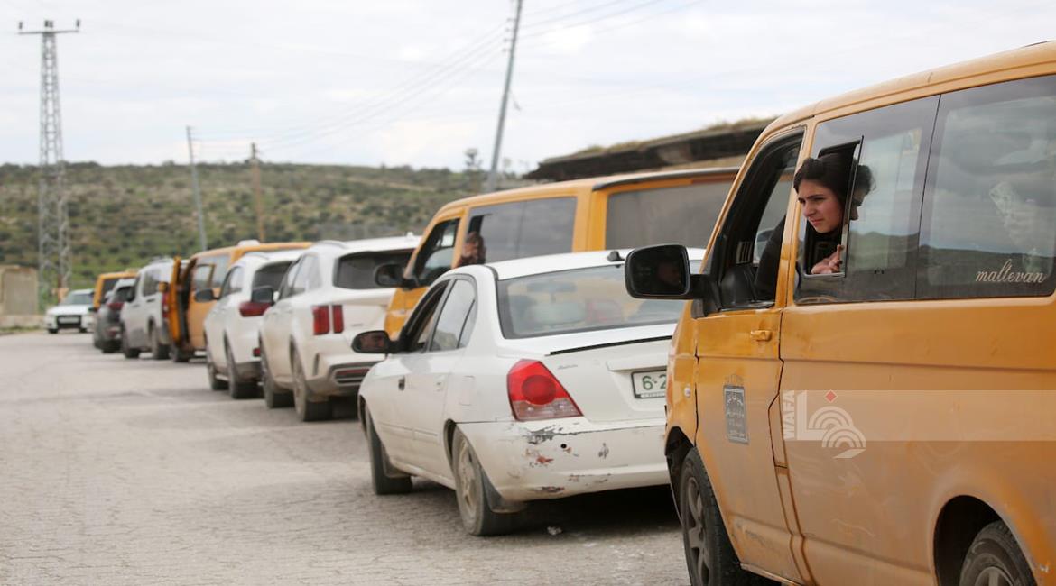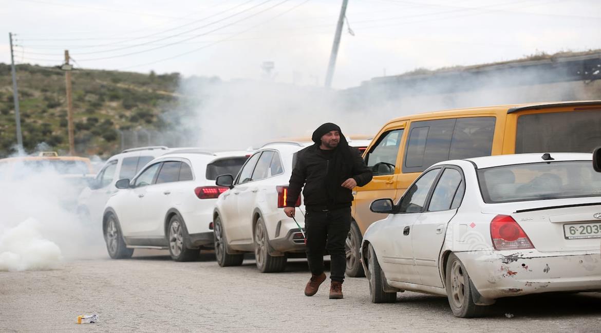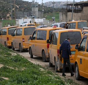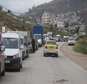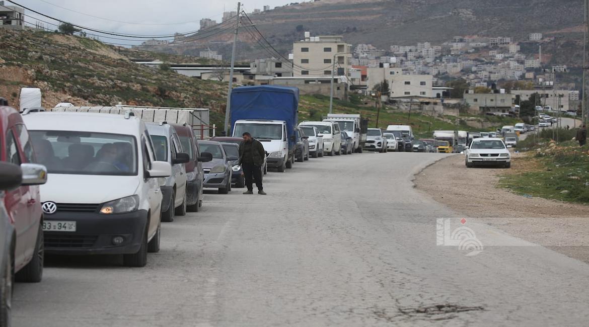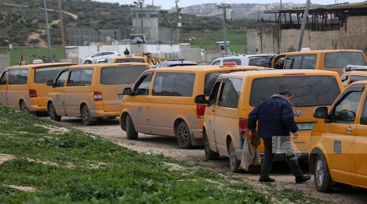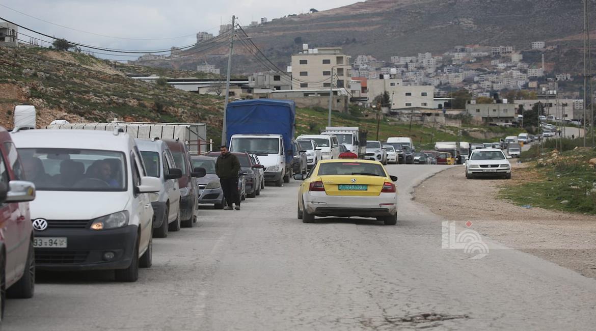 نابلس - مواطنون ينتظرون عند حاجز عسكري إسرائيلي قرب نابلس بعد أن أغلقت قوات الاحتلال الاسرئيلي الحواجز والبوابات الحديدية عند مداخل المدن في الضفة الغربية والقدس المحتلة.