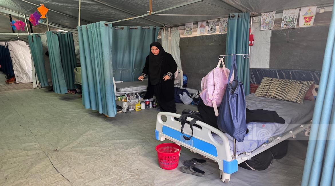 غزة - سحر الزطمة تعاني مع أطفالها اللذين أصيبا بالشلل والإعاقات الدائمة، داخل مستشفى الهلال الأحمر منذ ستة أشهر، جراء تعرضهم لقصف إسرائيلي استهدف خيمتهم في مواصي خان يونس.