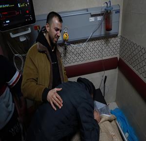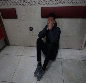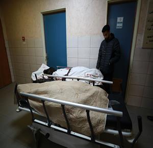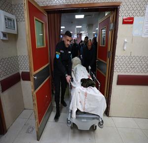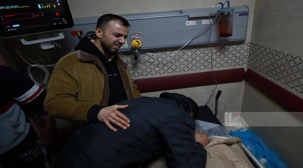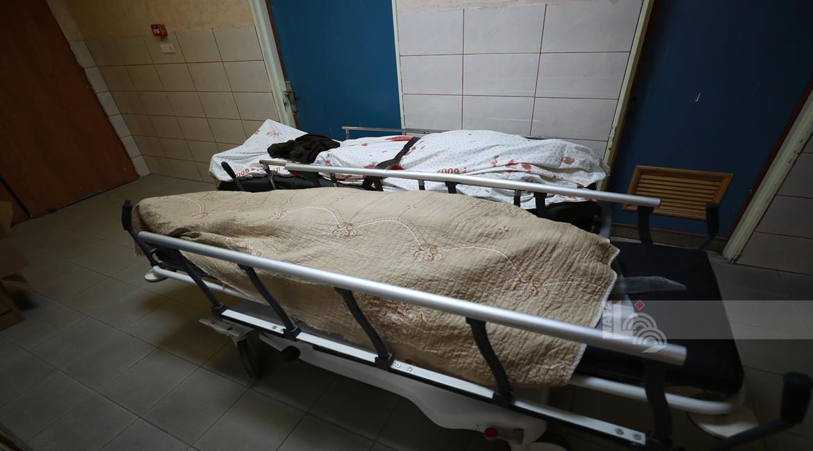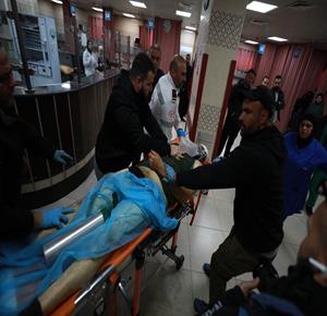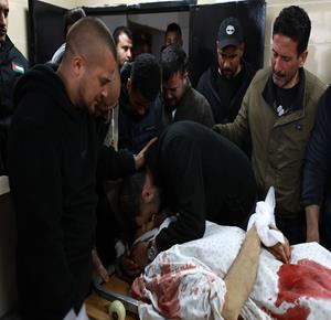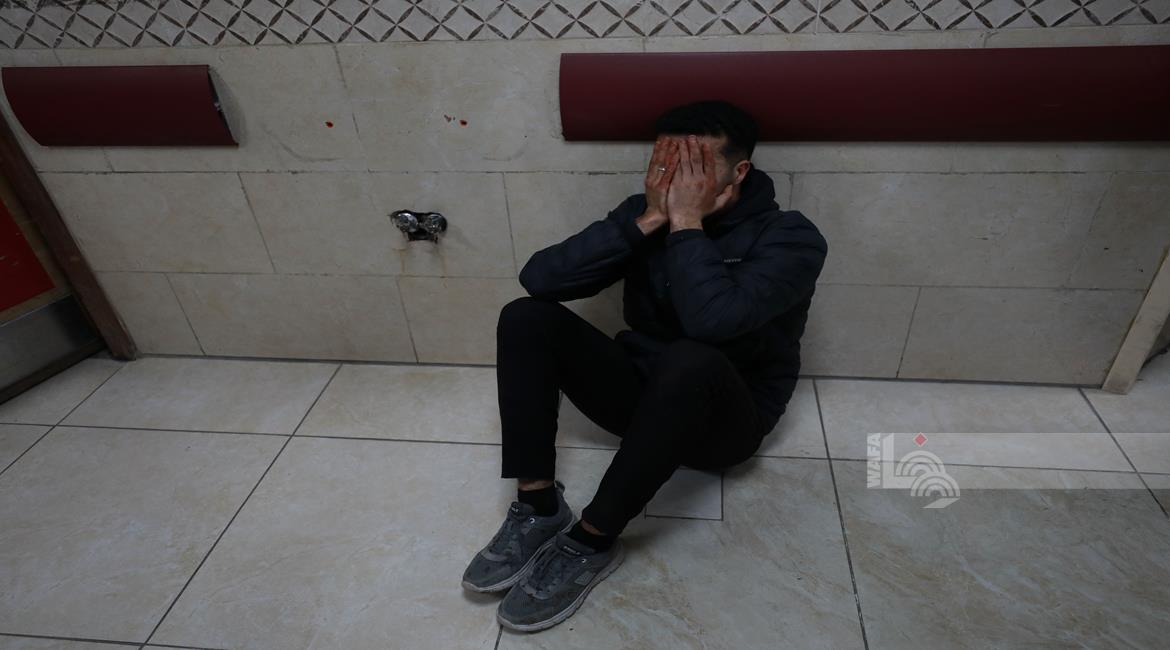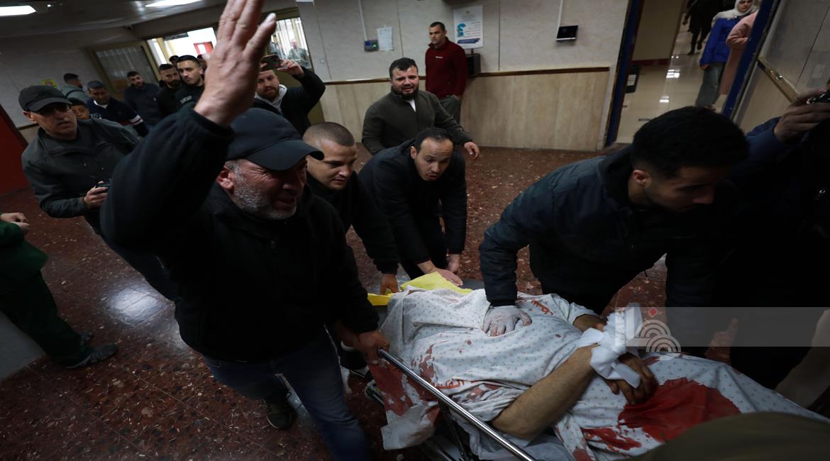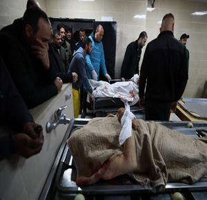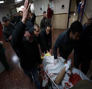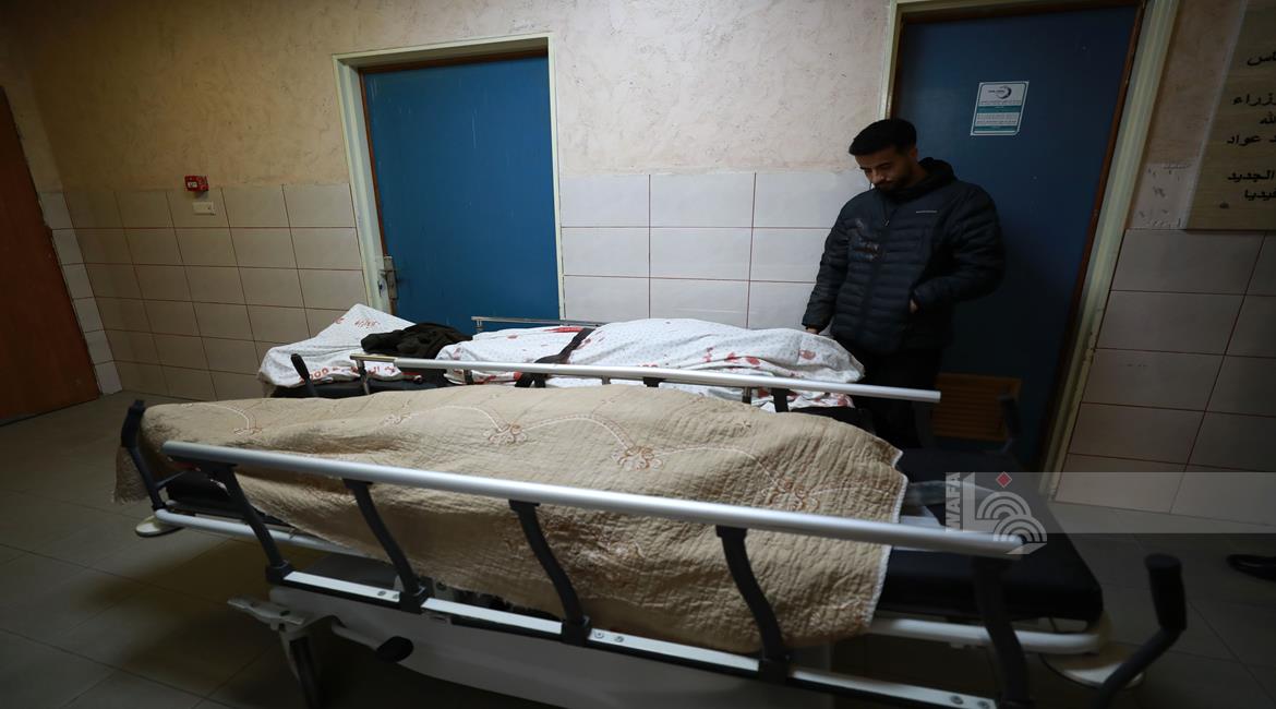 مواطنون خلال وداع جثماني شهيدين في مستشفى الشفاء بمدينة غزة