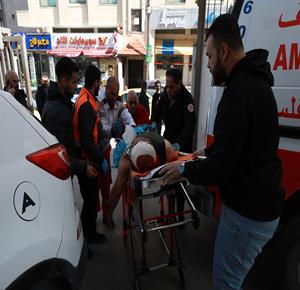 نابلس - وصول جثماني الشهيدين الشقيقين محمد معمر (52 عاما) وفهيم معمر (47 عاما) إلى مستشفى رفيديا الحكومي متأثرين بإصابتهما برصاص المستعمرين خلال هجومهم على قرية قريوت جنوب نابلس