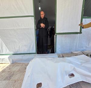 مسعفون ينقلون جرحى إلى مستشفى رفيديا، أصيبوا برصاص مستعمرين خلال هجومهم على قرية قريوت جنوب نابلس.