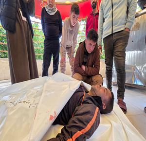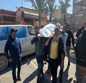 غزة - وداع وتشييع الشهيد باسل السقا الذي ارتقى بنيران جيش الاحتلال قرب منزله في منطقة القرارة شمال خان يونس
