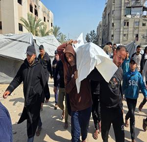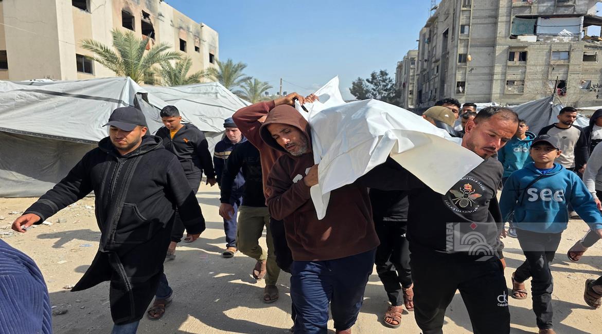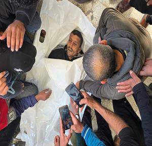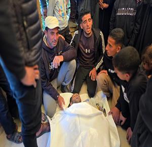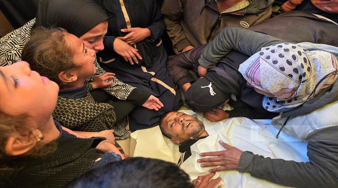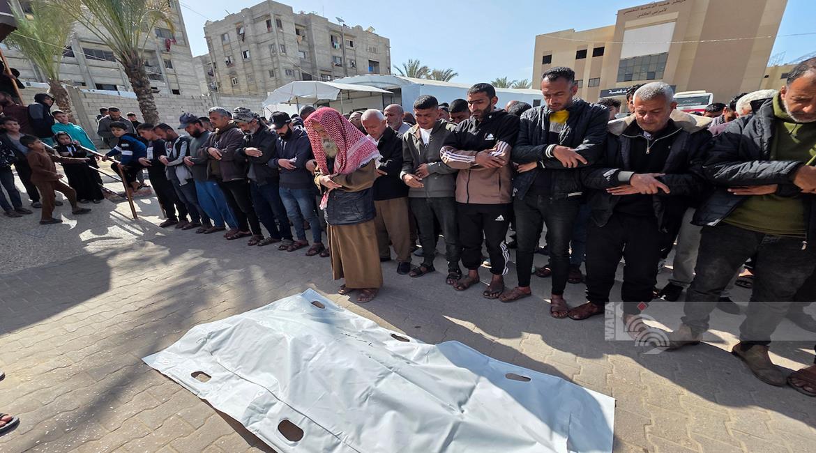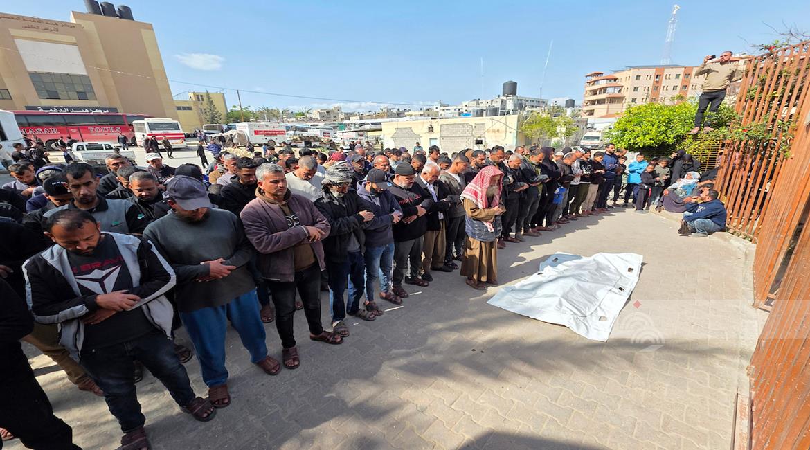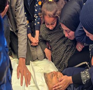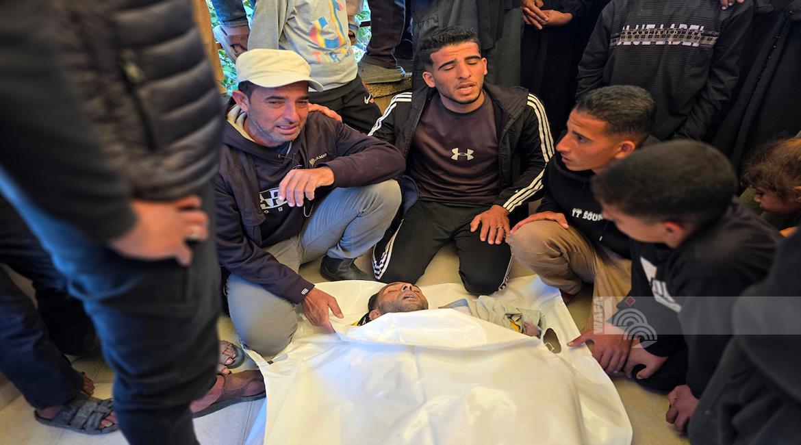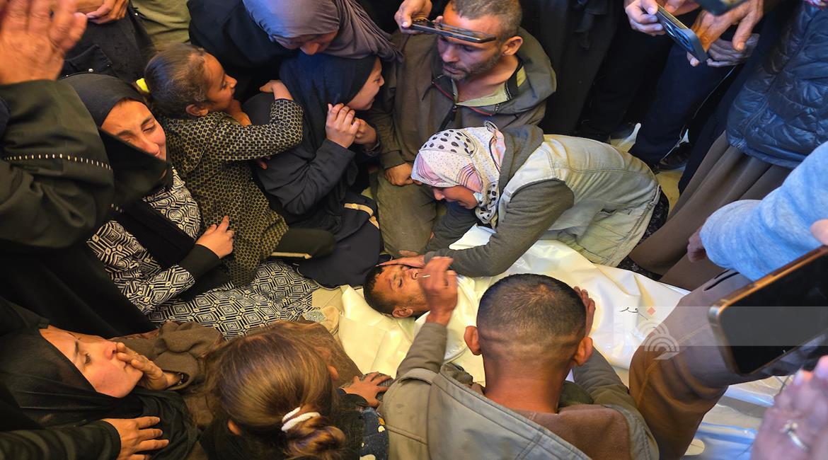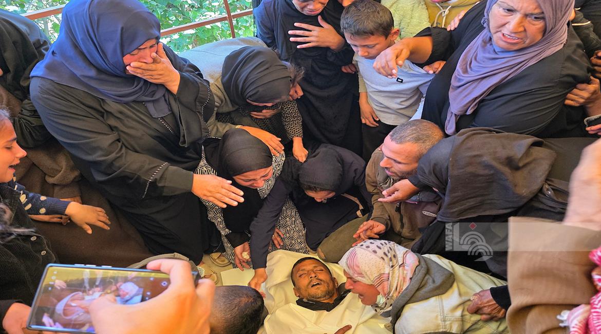 غزة - وداع وتشييع الشهيد منتصر سعد سمور في مستشفى ناصر، ارتقى برصاص الجيش الإسرائيلي في بلدة بني سهيلا شرق خان يونس