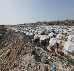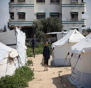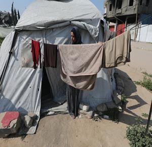 غزة - نازحون يعيشون في خيام مهترئة داخل مخيم البريج وسط قطاع غزة، ويقضون شهر رمضان في ظروف إنسانية صعبة وسط نقص حاد في الغذاء والمياه وغياب أبسط مقومات الحياة