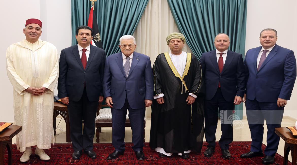 رام الله - الرئيس محمود عباس،يستقبل السفراء العرب المقيمين والمعتمدين لدى دولة فلسطين (مصر، الأردن، تونس، عمُان، والمغرب).