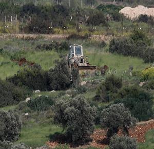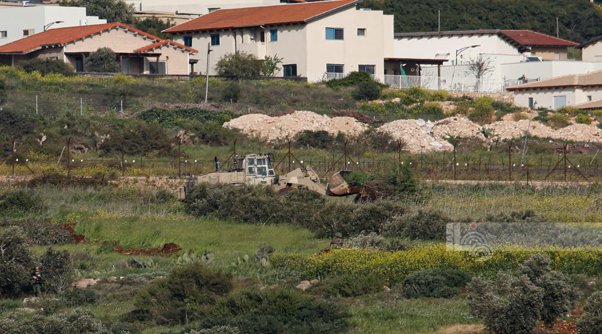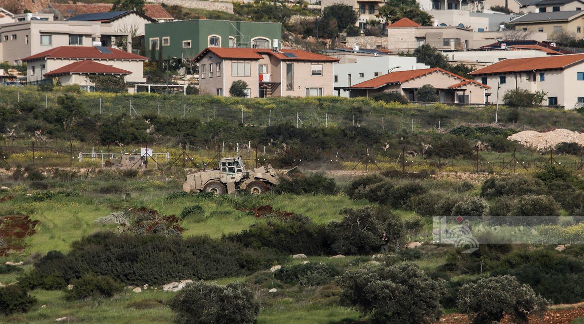 جنين - قوات الاحتلال الإسرائيلي تقوم بتجريف أشجار الزيتون قرب بلدة فقوعة شرق جنين