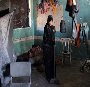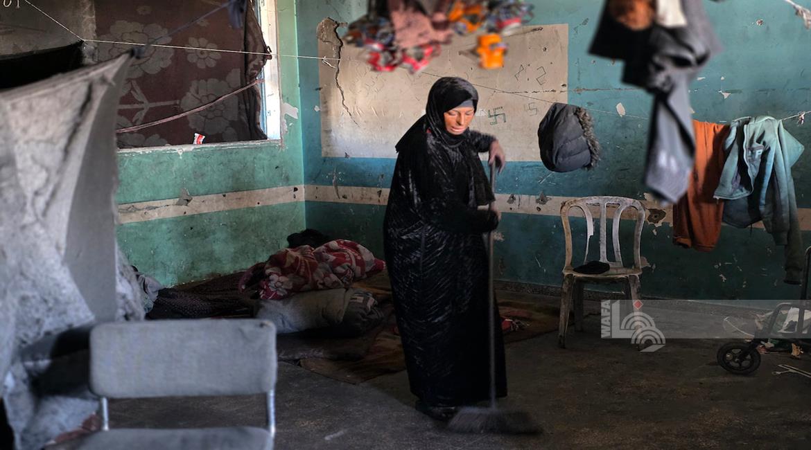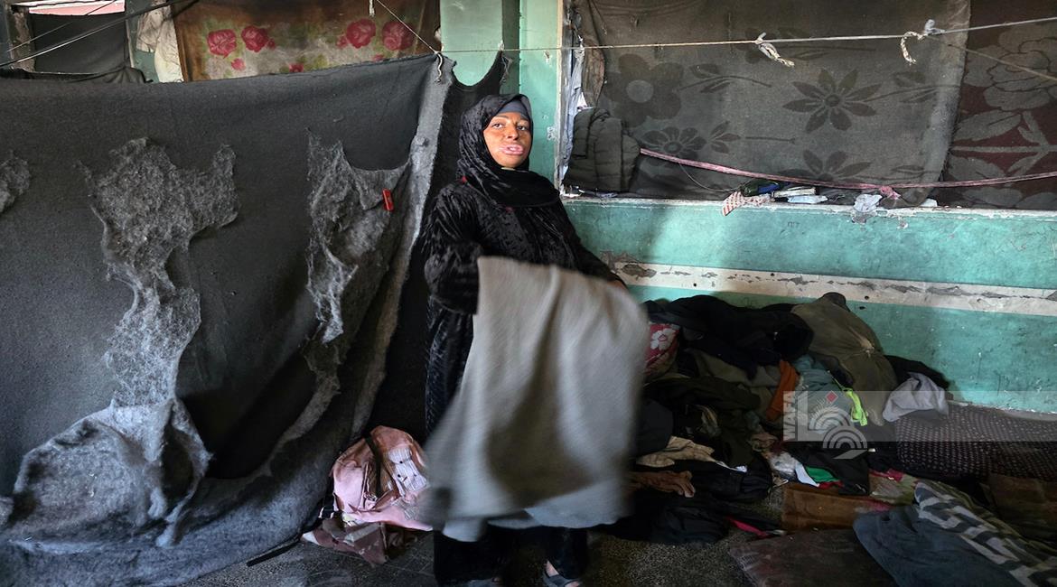 غزة - إكرام النجار تعيش داخل حجرة متضررة في مدرسة تحولت إلى مركز لإيواء النازحين في خان يونس، في ظروف قاسية بعدما فقدت معظم أفراد عائلتها خلال الحرب