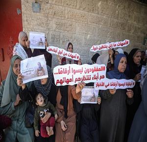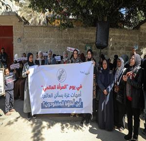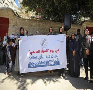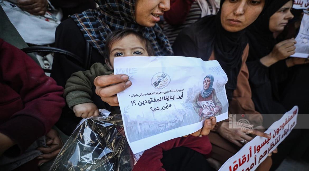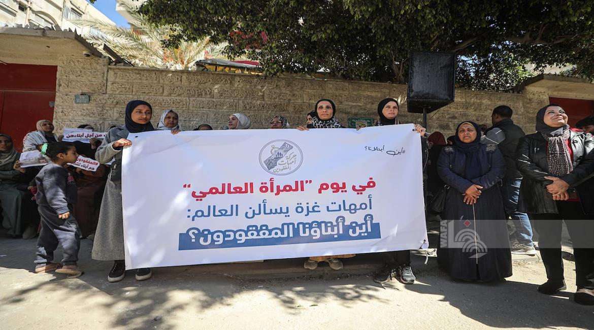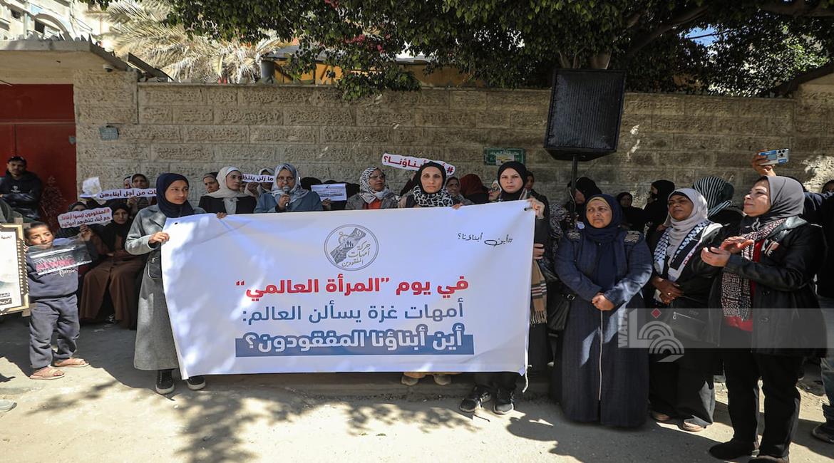غزة - أمهات يشاركن في وقفة تضامنية أمام مقر اللجنة الدولية للصليب الأحمر بمدينة غزة للمطالبة بكشف مصير المفقودين، وذلك تزامناً مع اليوم العالمي للمرأة