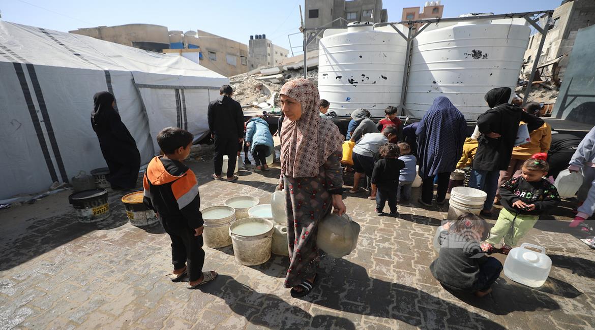 غزة - يحاول نازحون تلبية احتياجاتهم اليومية من المياه في أحد مراكز الإيواء بمدينة غزة، في ظل ظروف إنسانية قاسية ونقص حاد في أبسط مقومات الحياة مثل المأوى والغذاء والمياه النظيفة