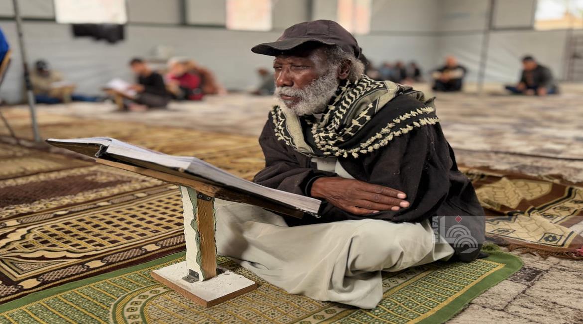 نازحون يؤدون صلاة الجمعة الأخيرة من شهر رمضان في ساحة مدرسة صلاح الدين التابعة للأونروا، والتي تحولت إلى مركز لإيواء النازحين في مدينة غزة