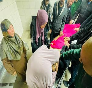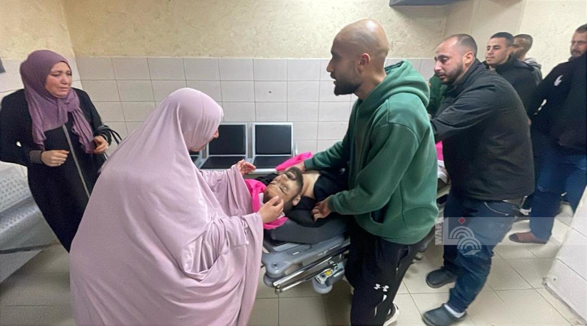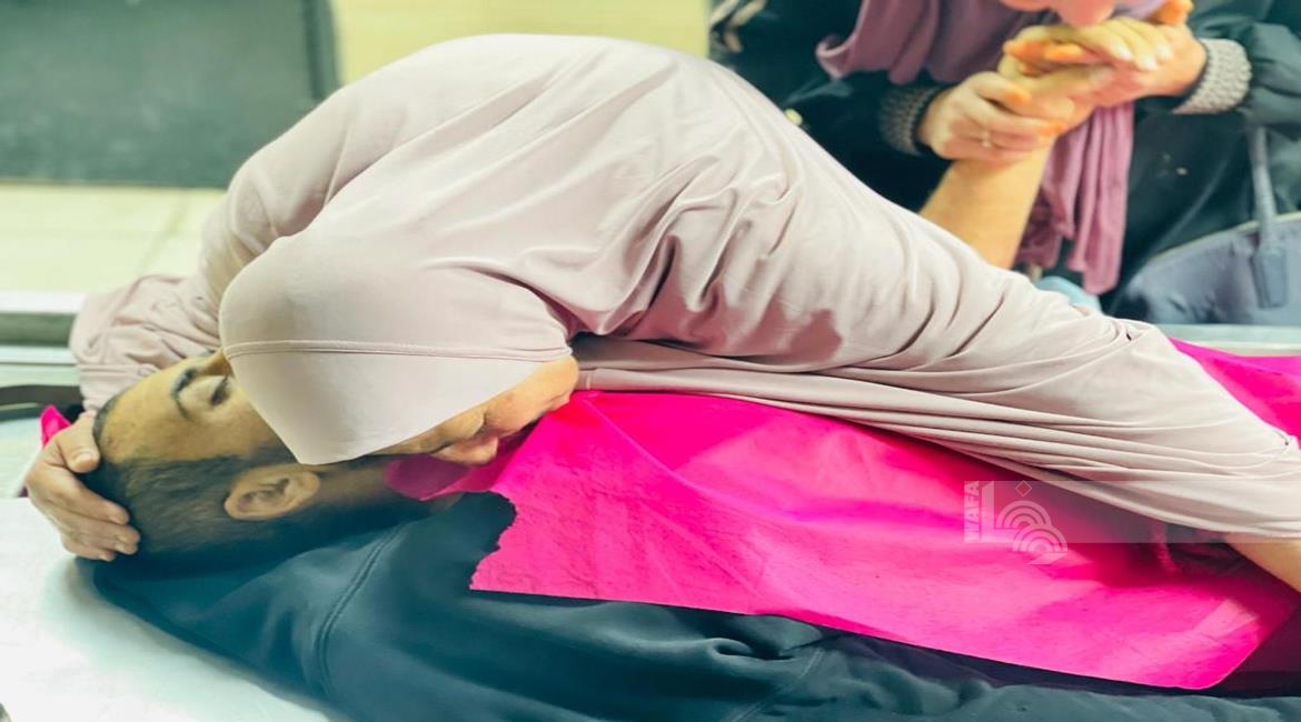 نابلس - أقارب الشهيد أمير معتصم محمود عودة (٢٨عاماً) بلقوات نظرة على جثمانة في مستشفى رفيديا بنابلس استشهد أمير برصاص المستوطنين خلال هجومهم على بلدة قصرة