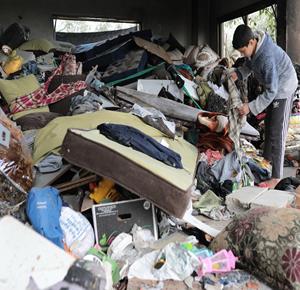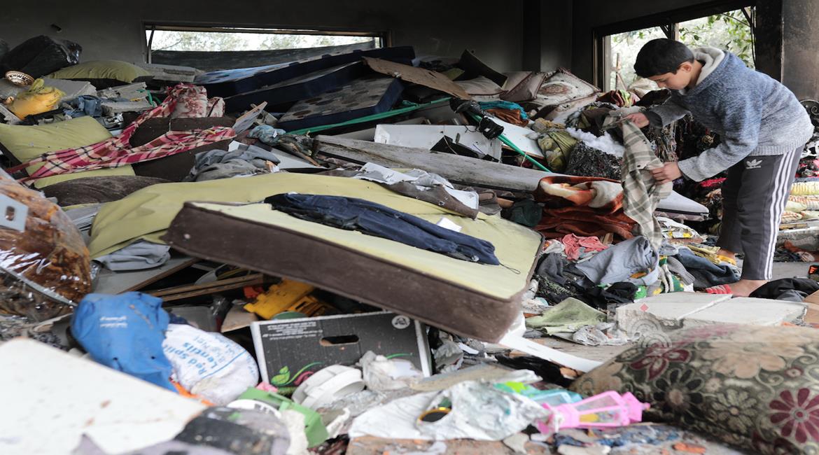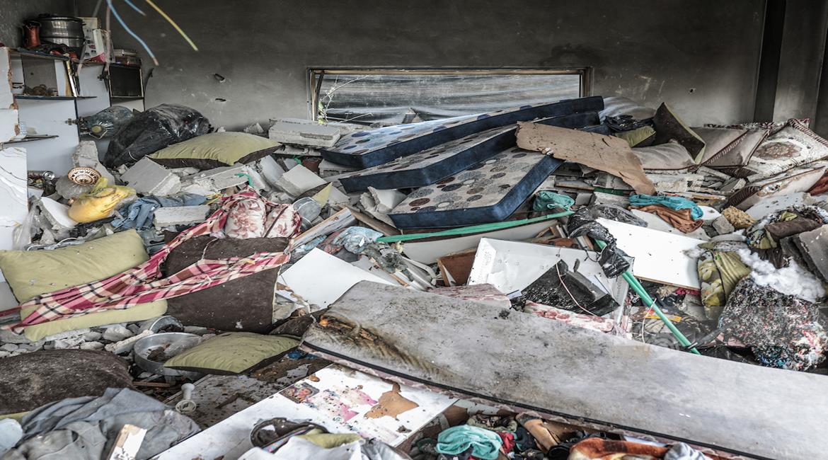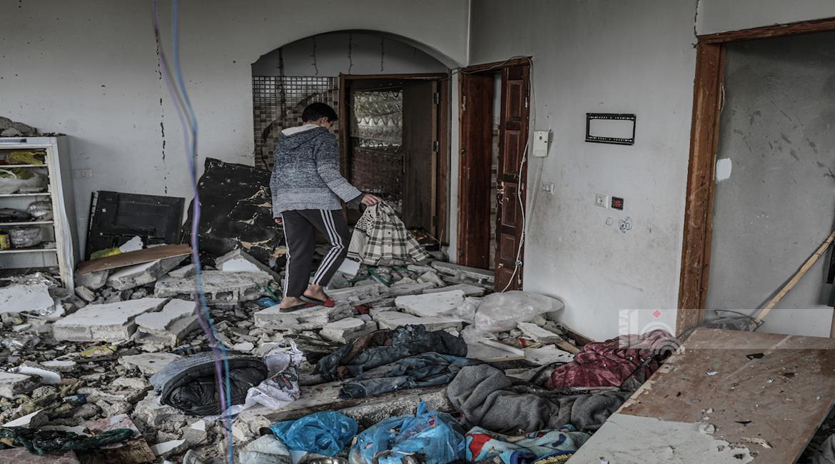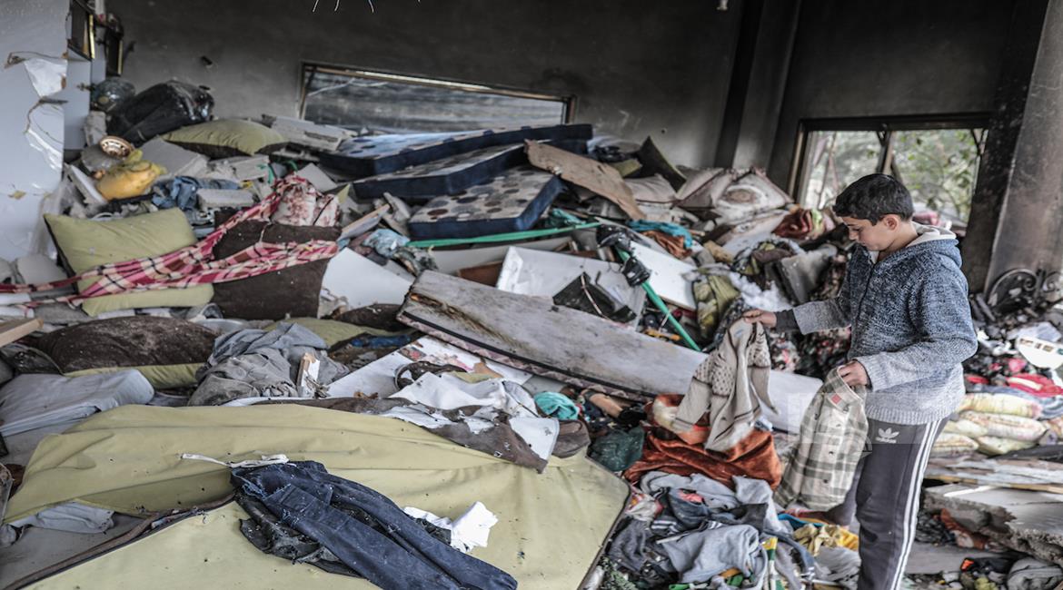 غزة - مواطنون يتفقدون آثار الدمار جراء قصف الاحتلال مبنى سكني في السوارحة بمخيم النصيرات، ما أدى لاستشهاد كامل عياش وطفله وزوجته الحامل