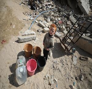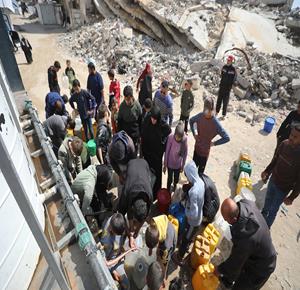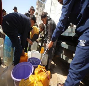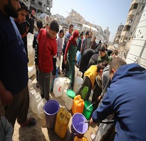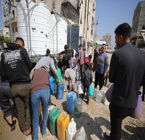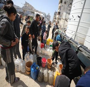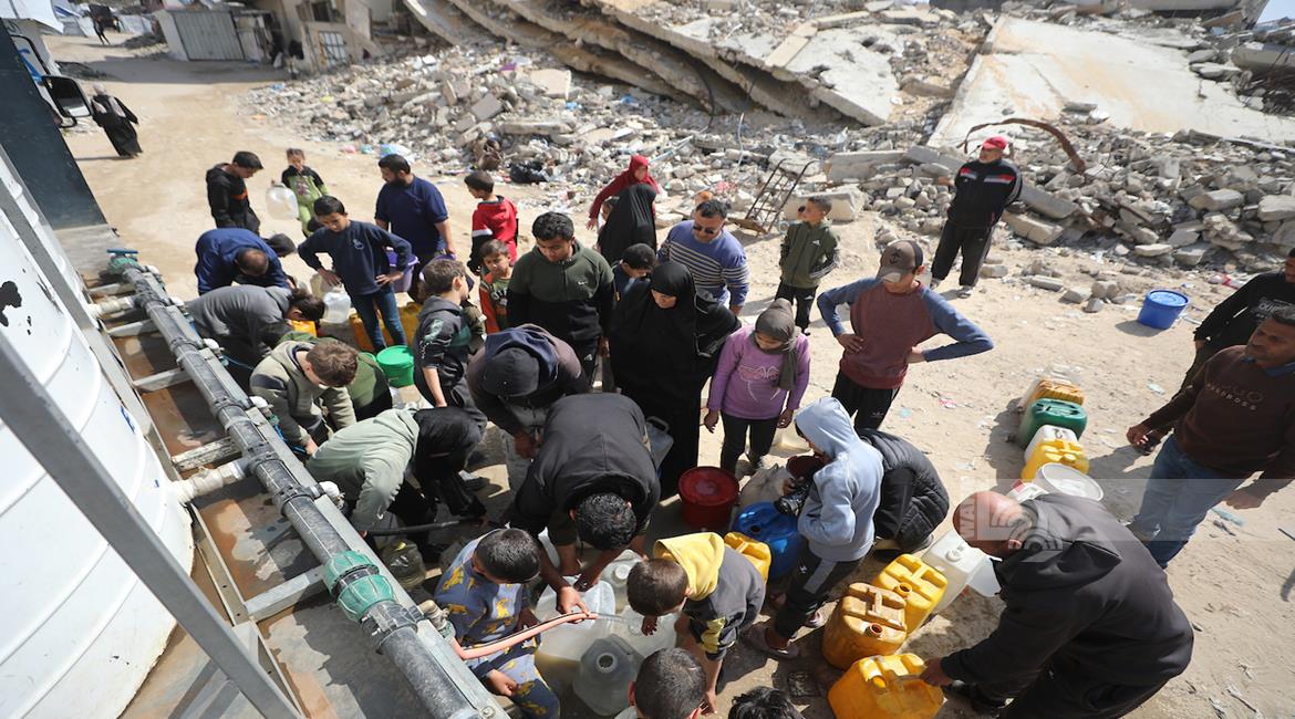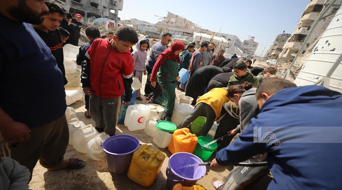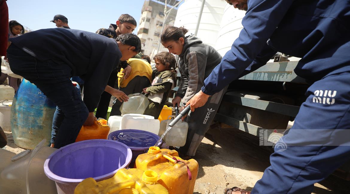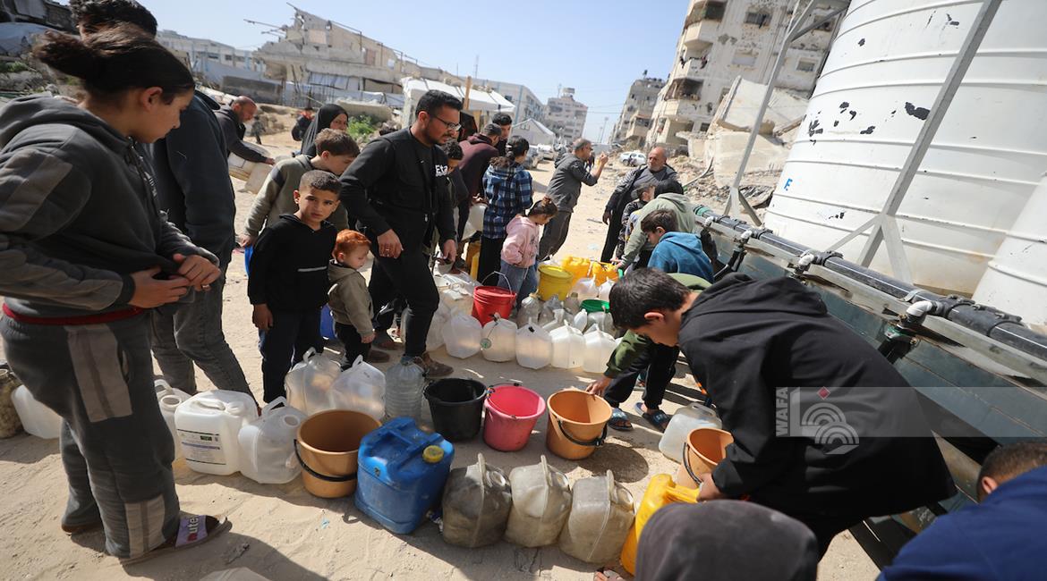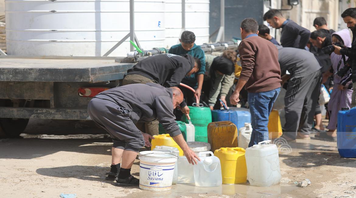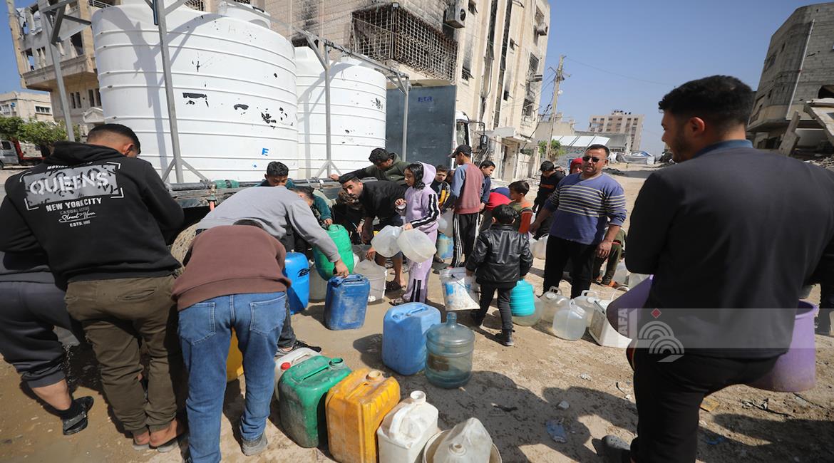 غزة - معاناة كبيرة يتكبدها النازحون لتأمين مياه صالحة للشرب وسد جزء من احتياجاتهم اليومية في مدينة غزة